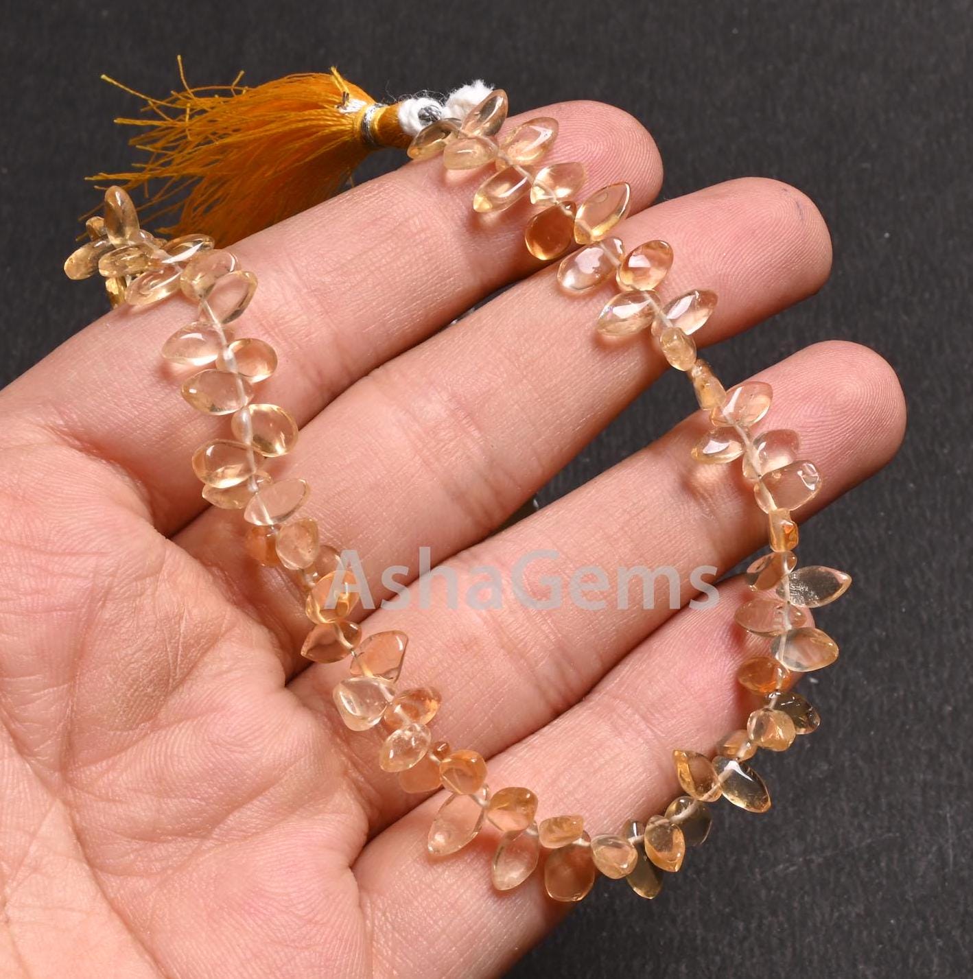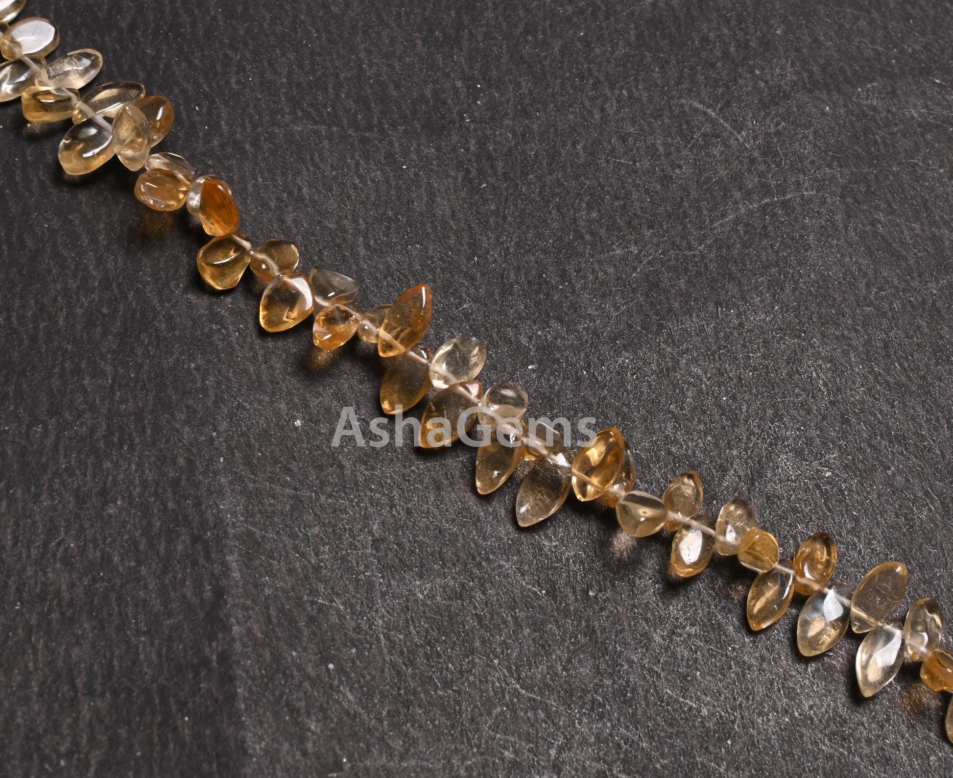 Natural Yellow Citrine Smooth Marquise cabochon Side Drill Beads,8" Fine Citrine Quartz Plain Handmade Marquise Gemstone Beads Jewelry Craft