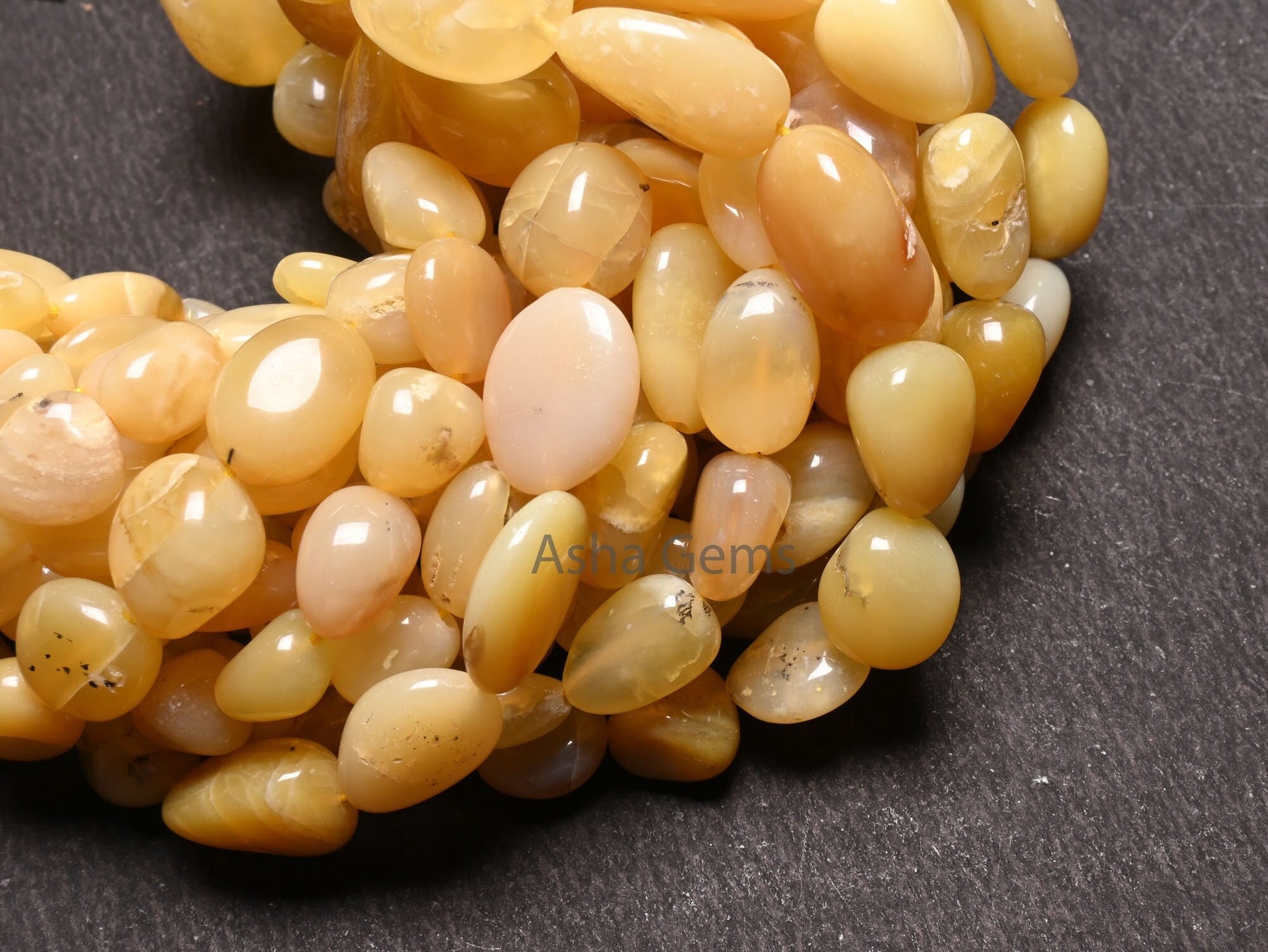 Natural Yellow Opal smooth Nugget Gemstone Loose beads,18" Fine Opal Plain Handmade tumble Graduation Size Yellow Opal Bead Necklace Jewelry (AG 22304)