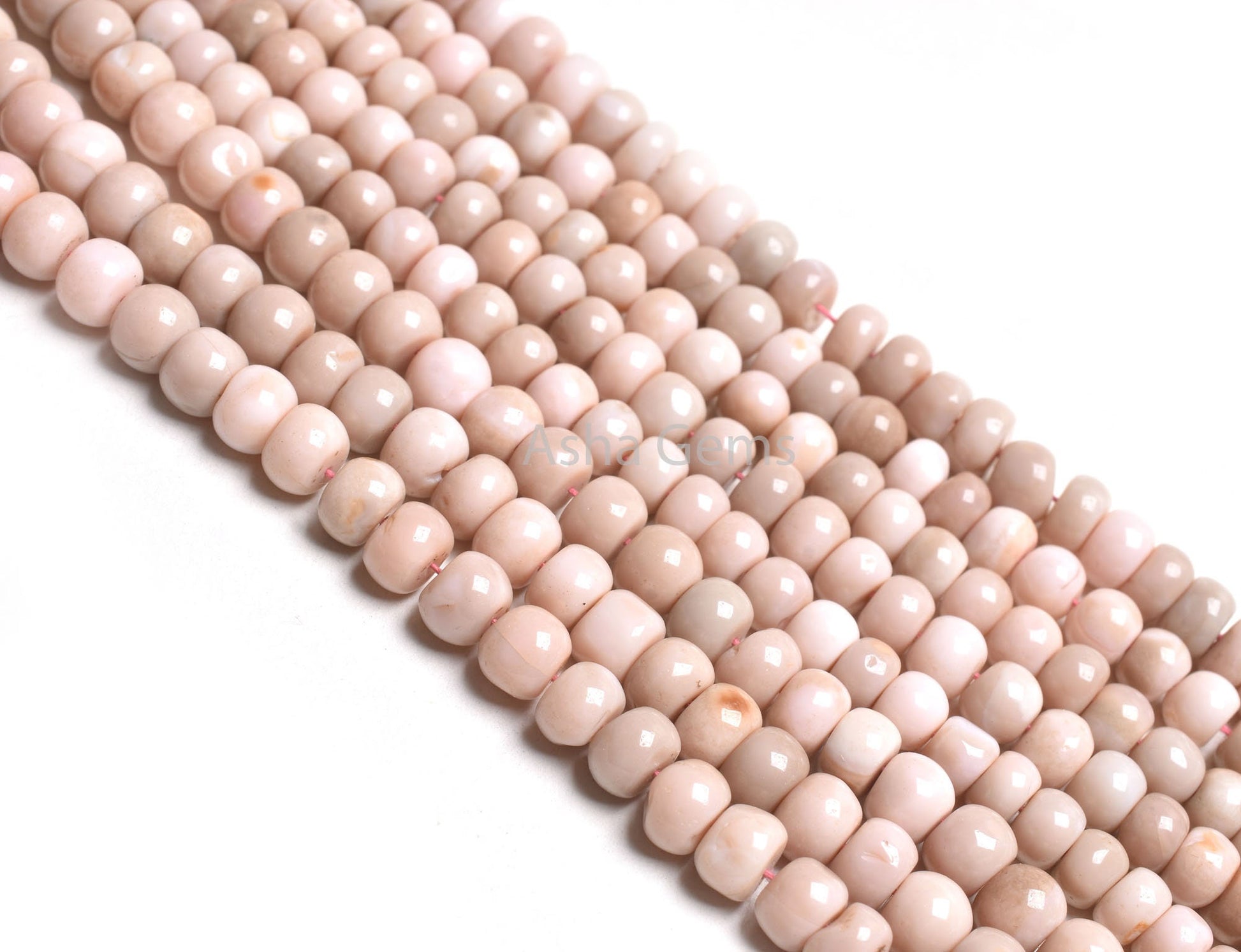Opal Smooth Rondell Shape Beads,9" Strand Shaded Pink Peach Opal Beads, Bio Pink Opal Plain Handmade Gemstone Beads