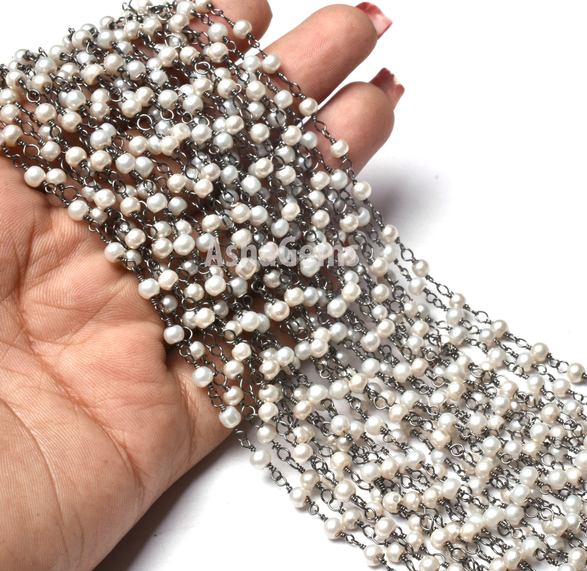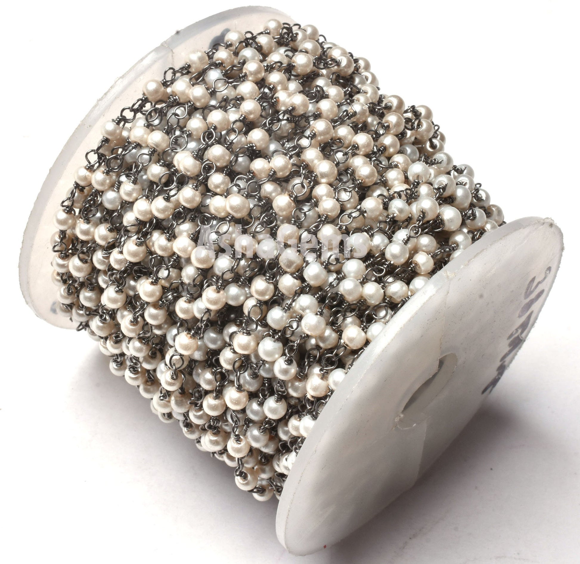 Pearl Hydro Rondelle Smooth Hydro Beaded Rosary Chain,Black Metal Plated,Jewelry Making Chain,Finding, Wire Wrapped Chain,3-3.5mm ,Gunmetal