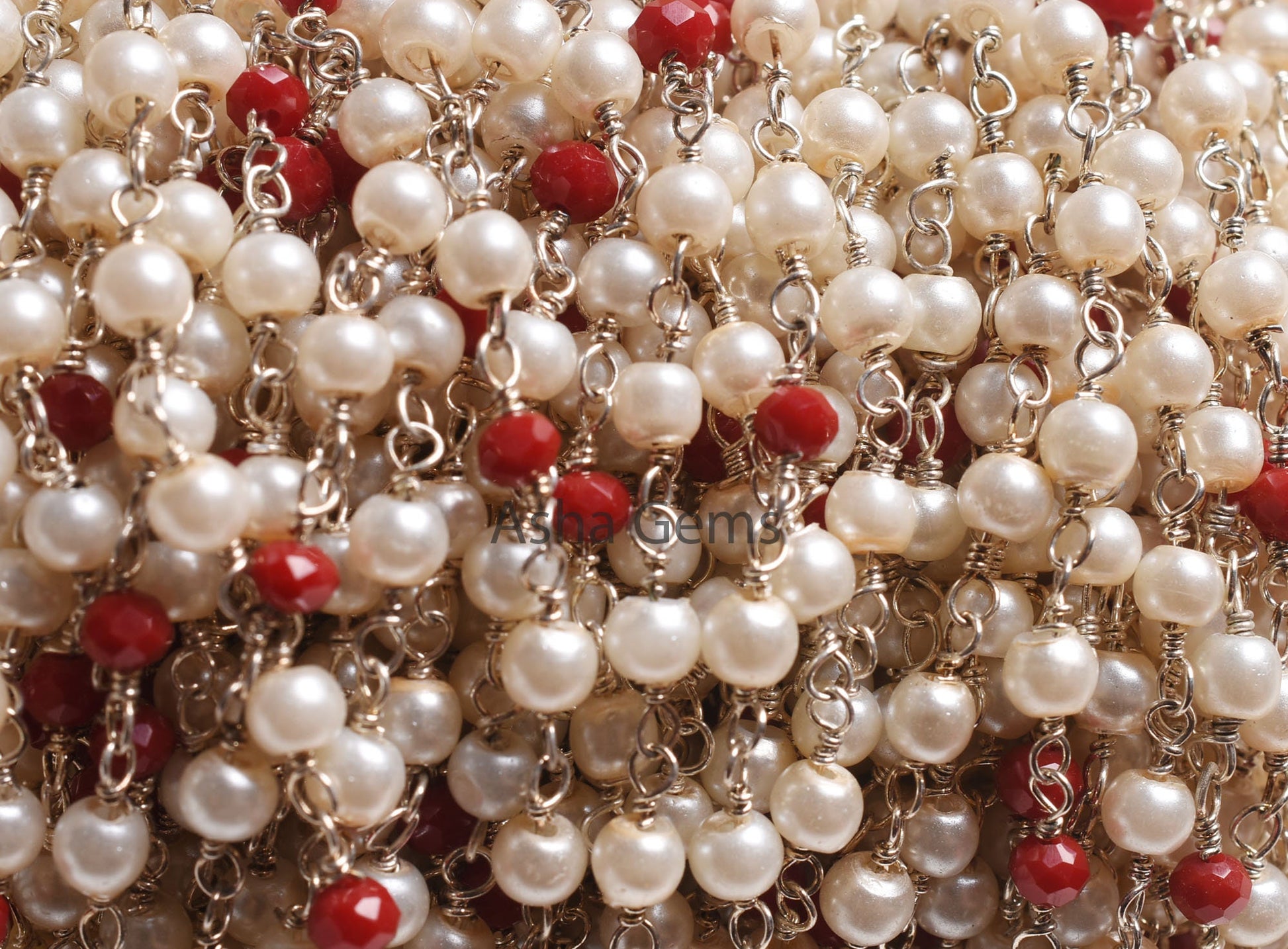 Pearl Red Ruby Hydro Rondelle Beads Rosary Chain, Silver Plated Wire Bulk Roll Multi Color Chain,3,10,50 Foot Chain For jewelry Making Craft