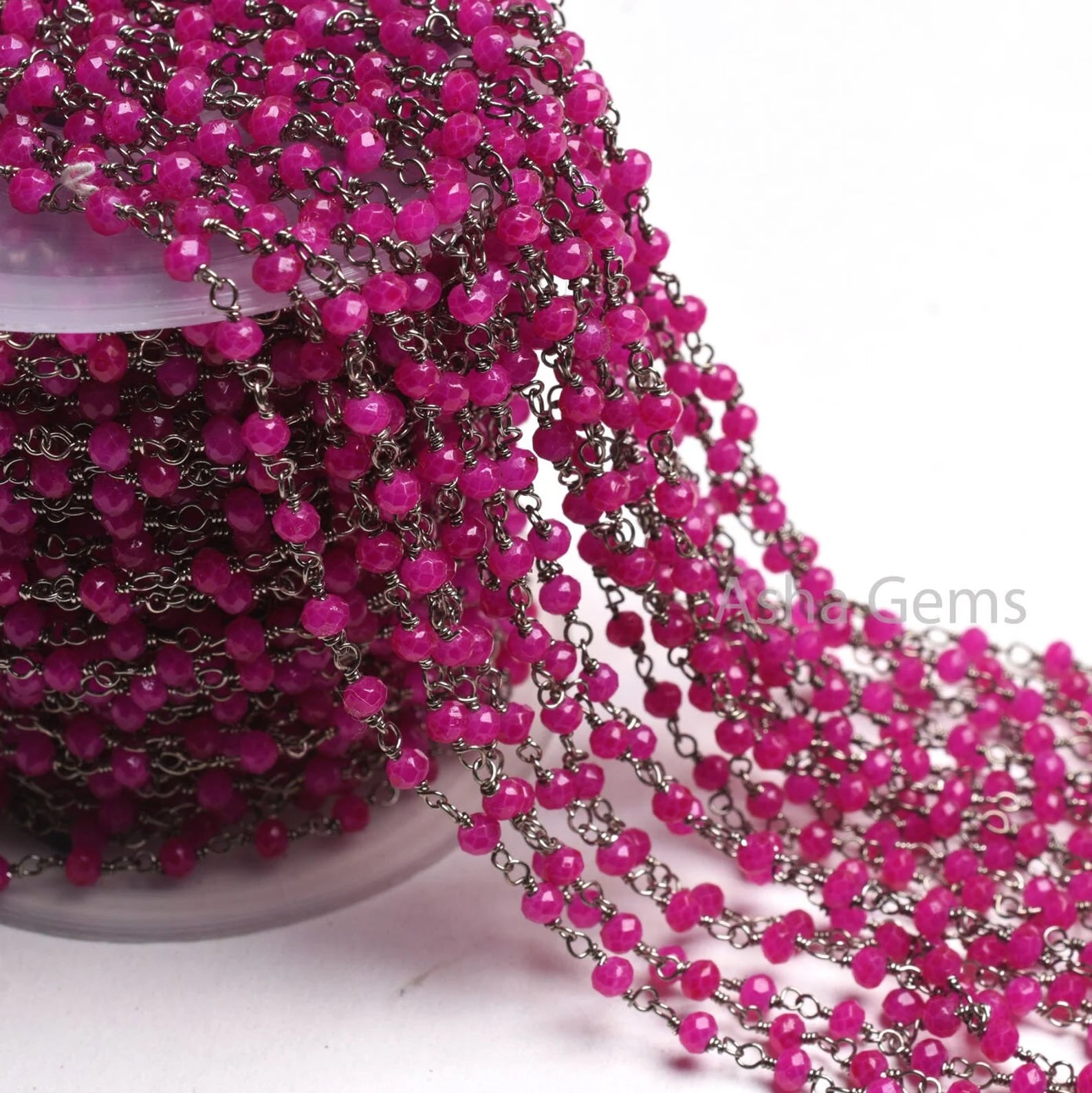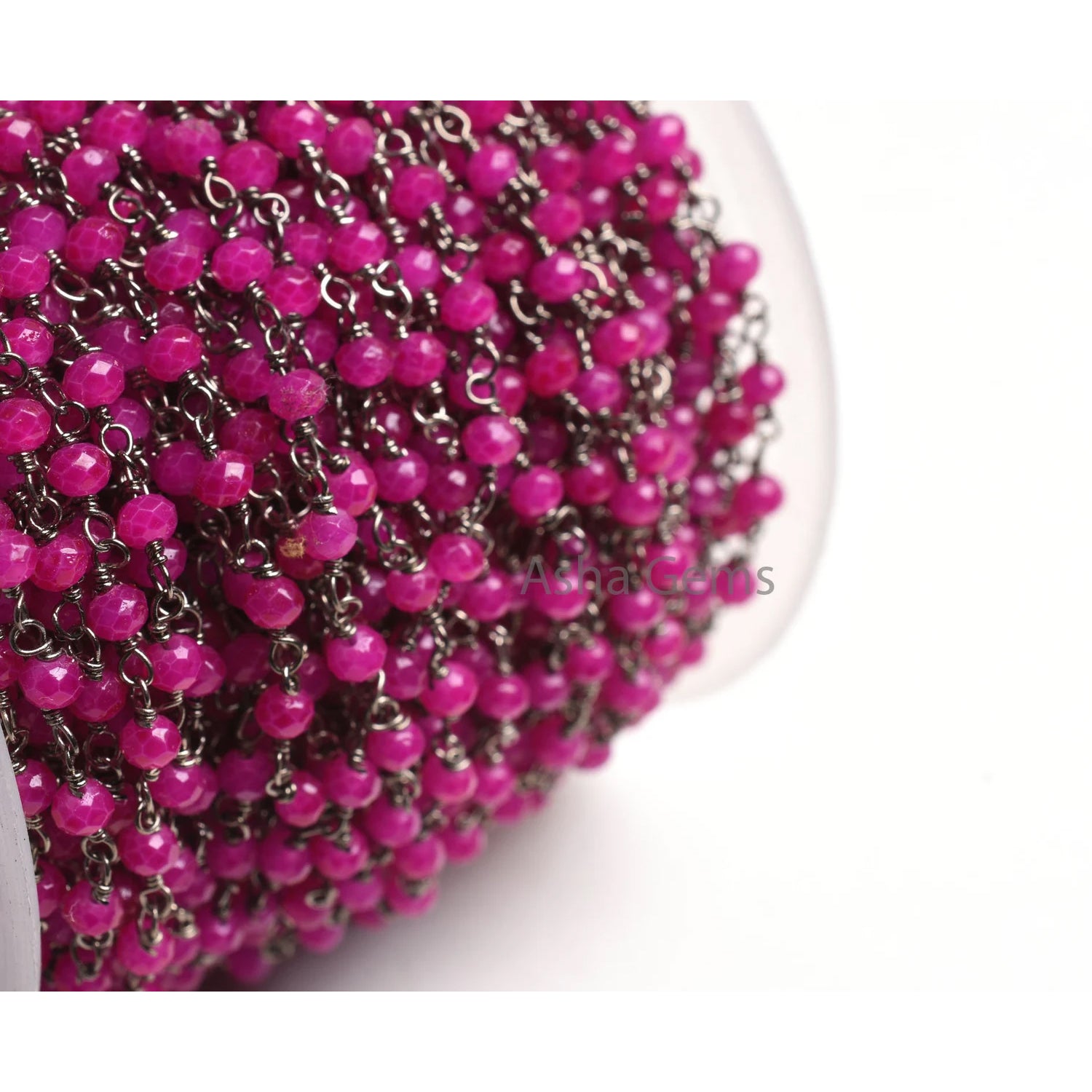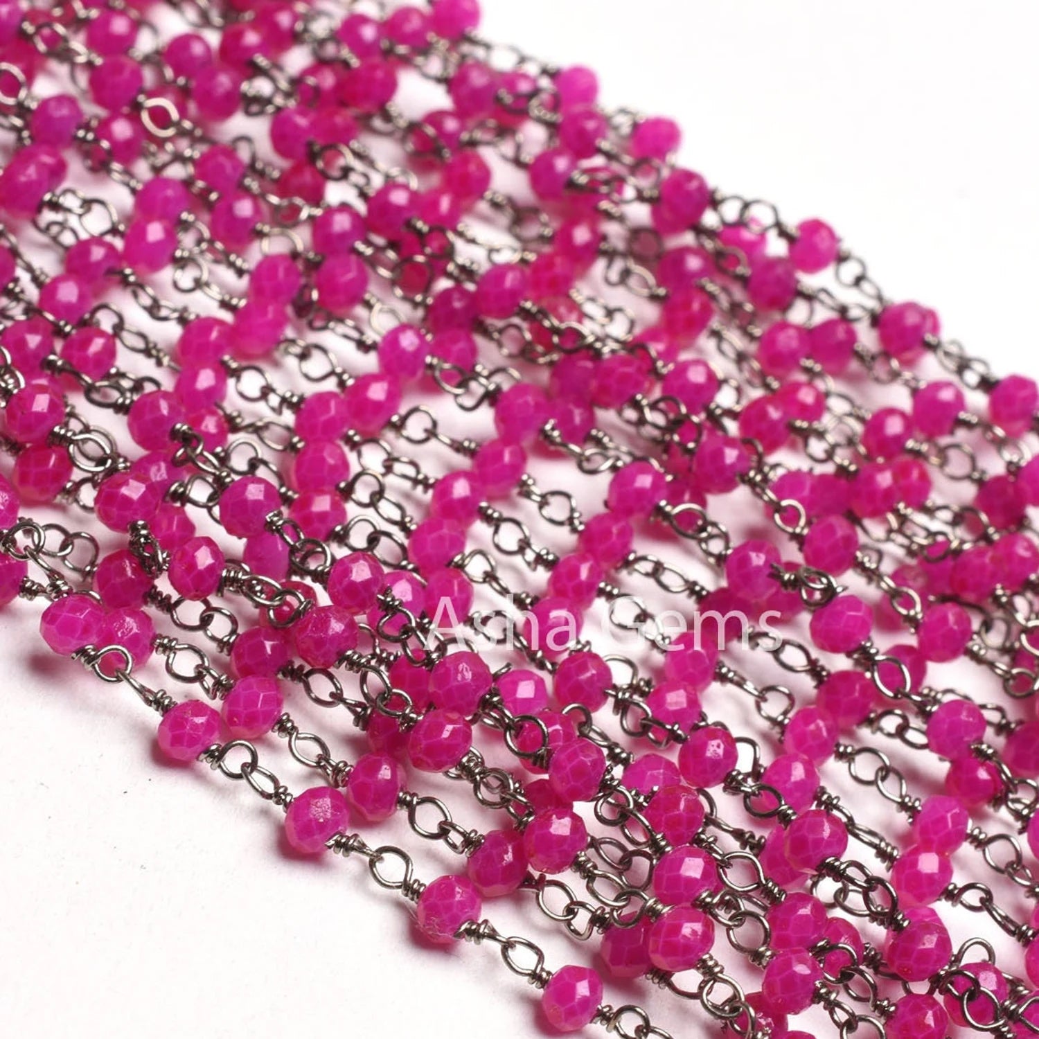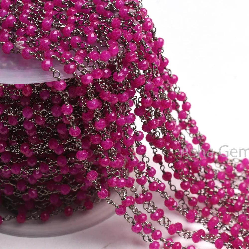 Pink Chalcedony Hydro Faceted Rondelle Rosary Chain Black Plated Wire 3,5,10 Feet Jewelry Making Finding Wire Wrapped Chain For Craft Making
