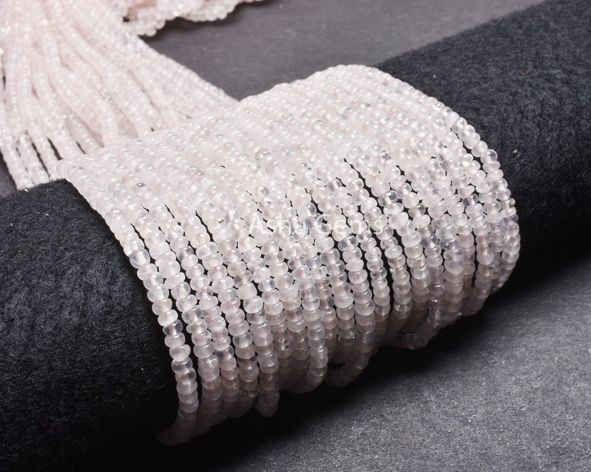 Pink Rose Quartz Smooth Beads, Natural Rose Quartz Plain Handmade Rondelle Gemstone Loose Beads,12" Rose Quartz Bead Jewelry Handicraft SALE