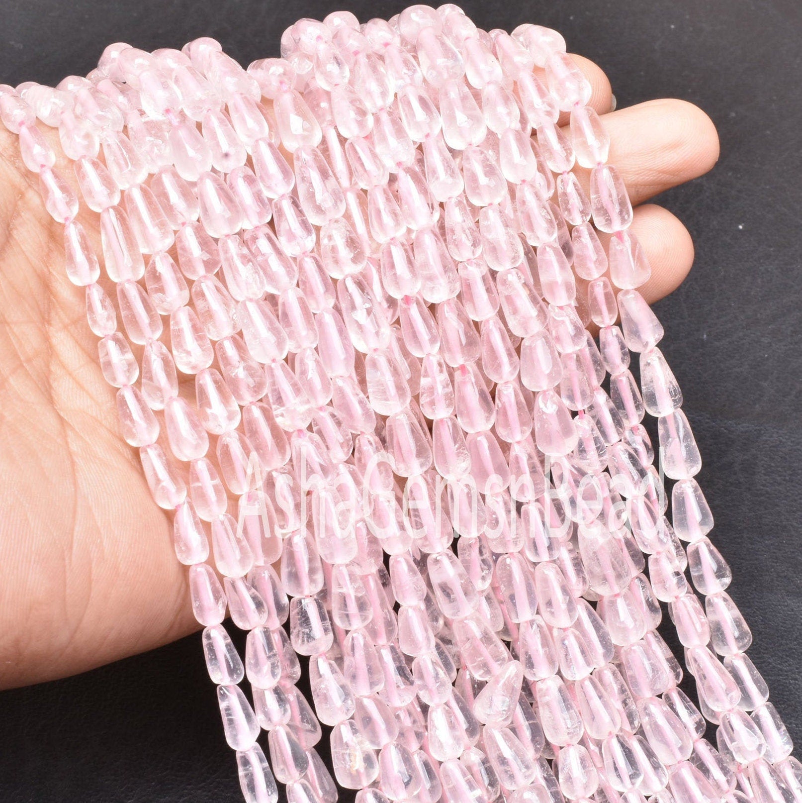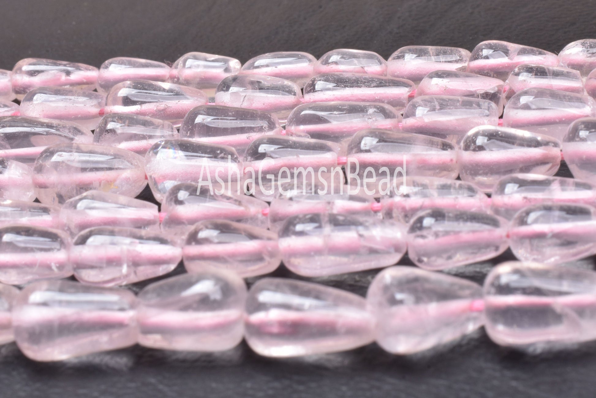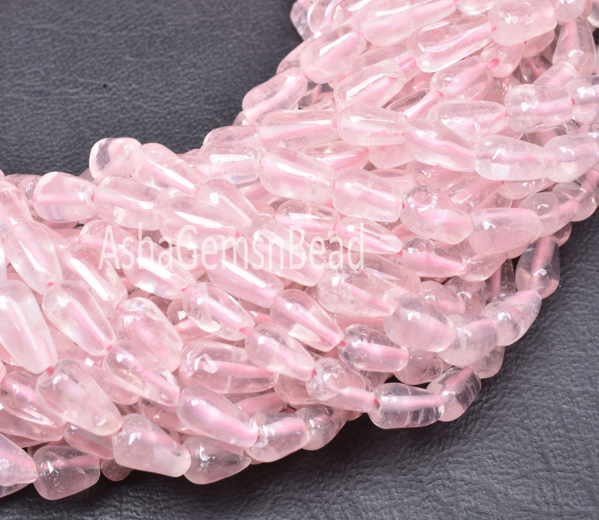 Pretty Pink Rose Quartz Smooth Drops Shape Beads, Natural Rose Quartz Teardrop,14"Strand Rose Quartz Straight Drill Drops handmade Bead SALE