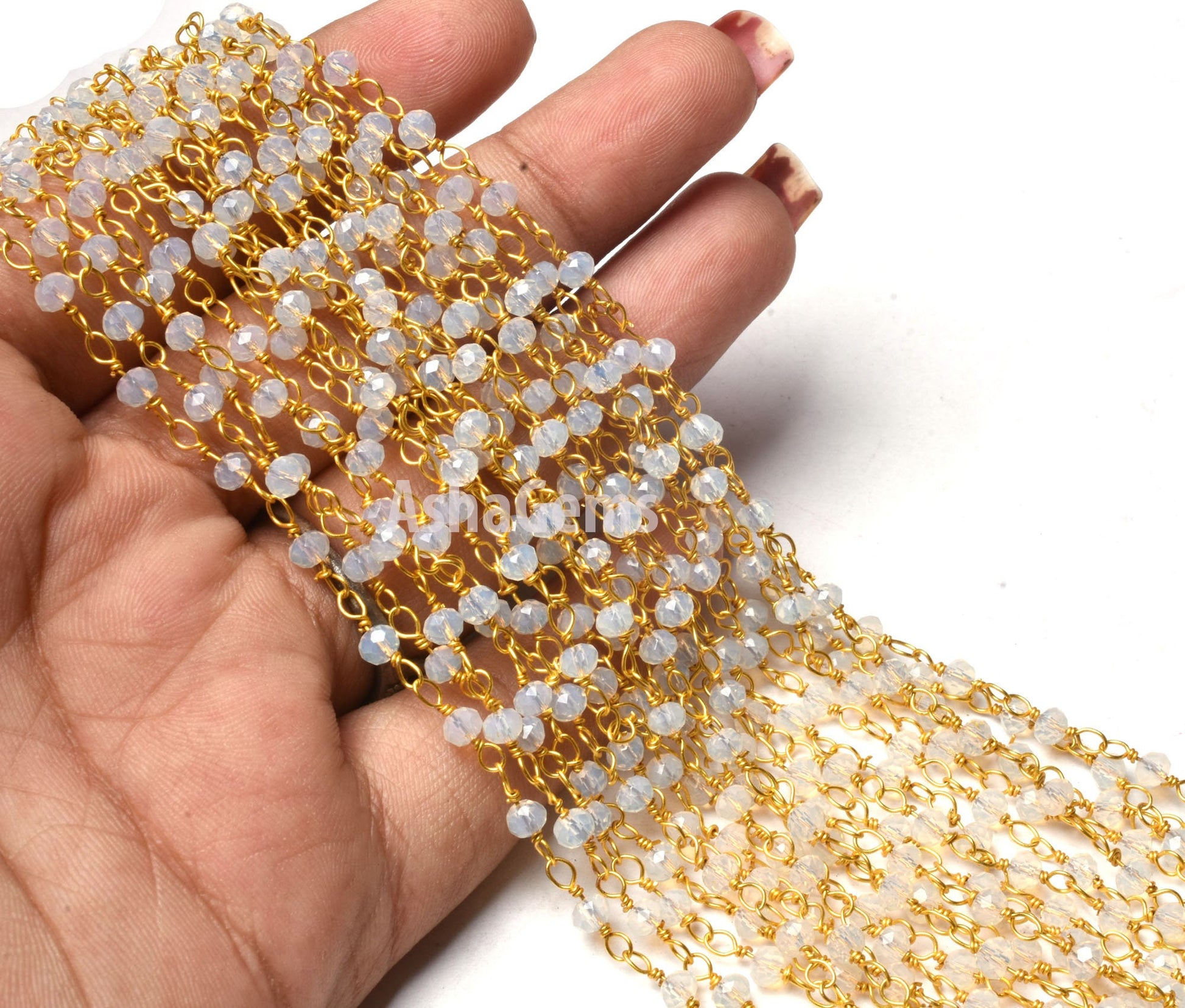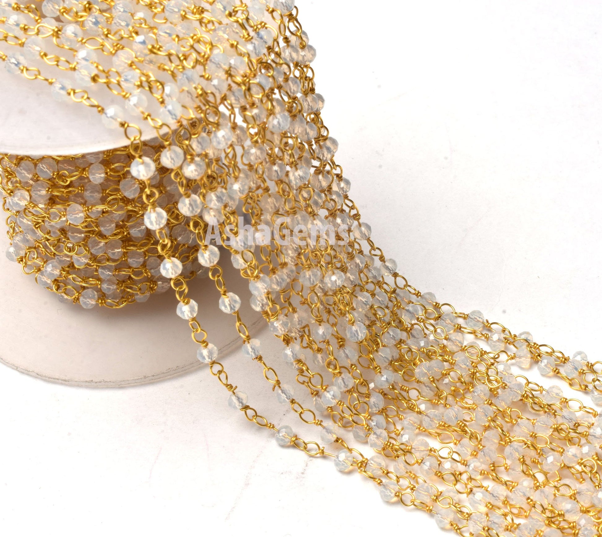 Rainbow Moonstone Hydro Beads Rosary Chains,3,5,10,25,50 Ft Roll Bulk,Beautiful Gold Plated Wire,Faceted Rondelle Beads Chain,jewelry Making