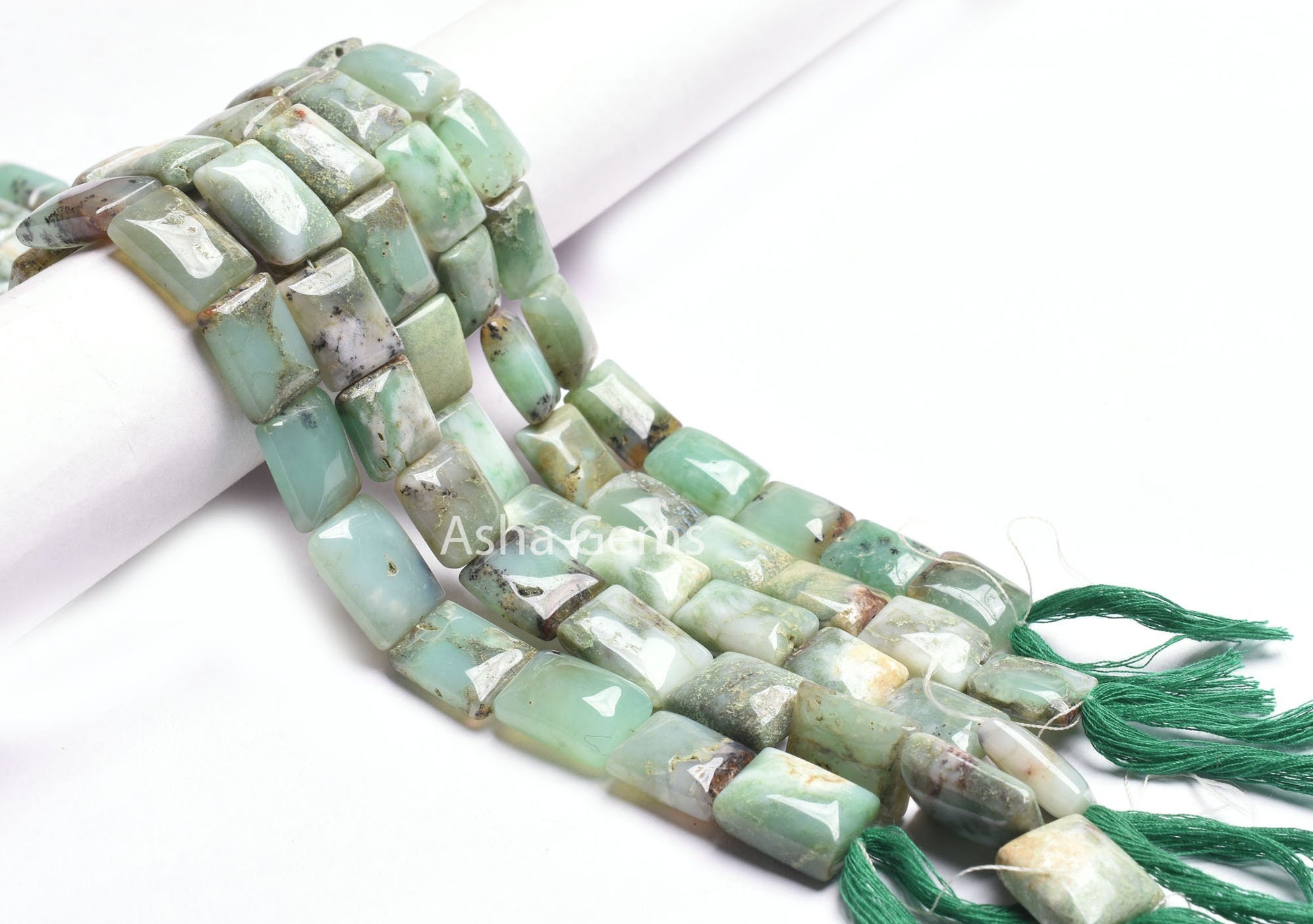 Real Chrysoprase Smooth Chiclet Gemstone Beads,15" Strand Chrysoprase Beads, Natural Light Green Chrysoprase Handmade Rectangle Bead Jewelry