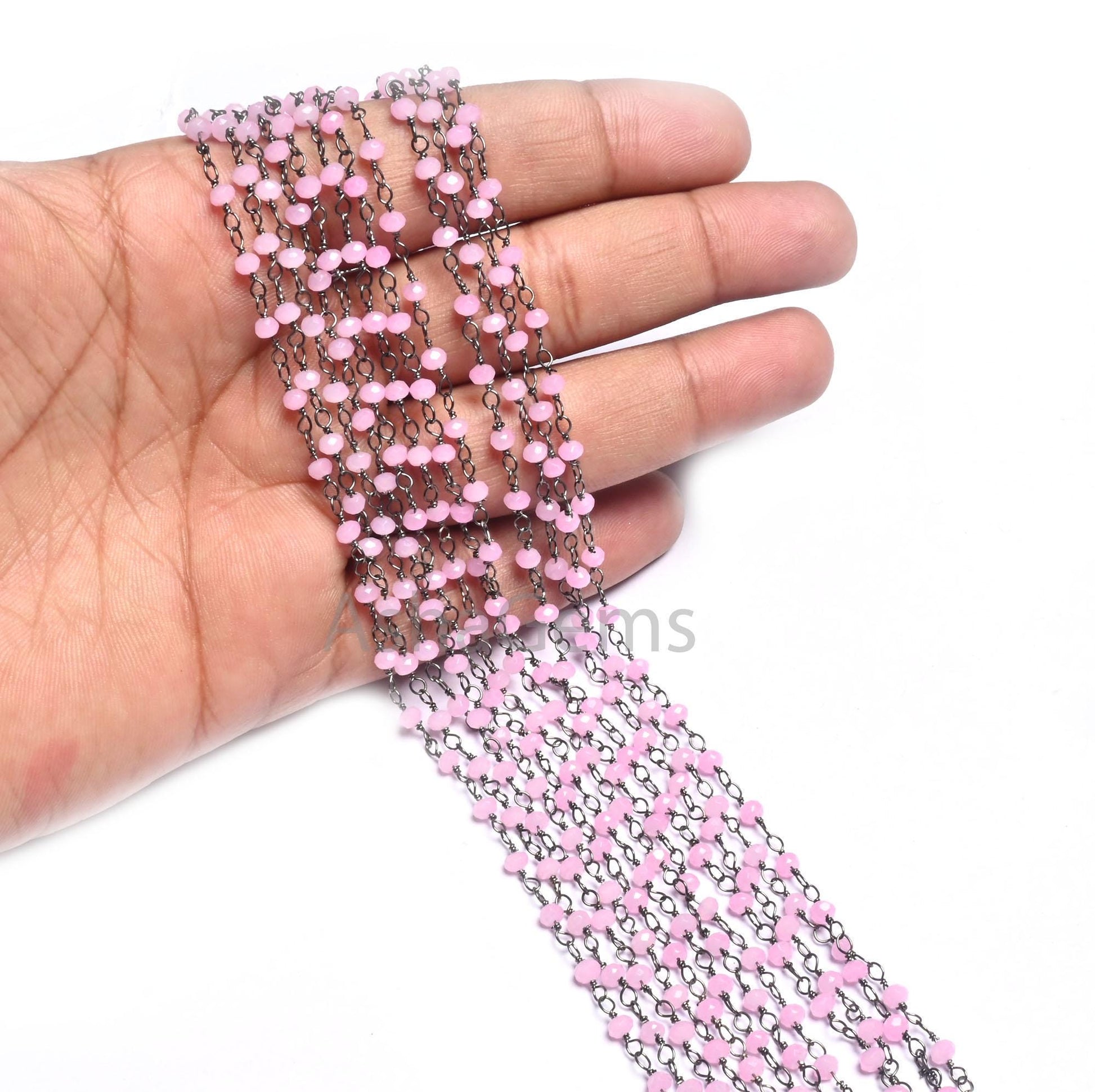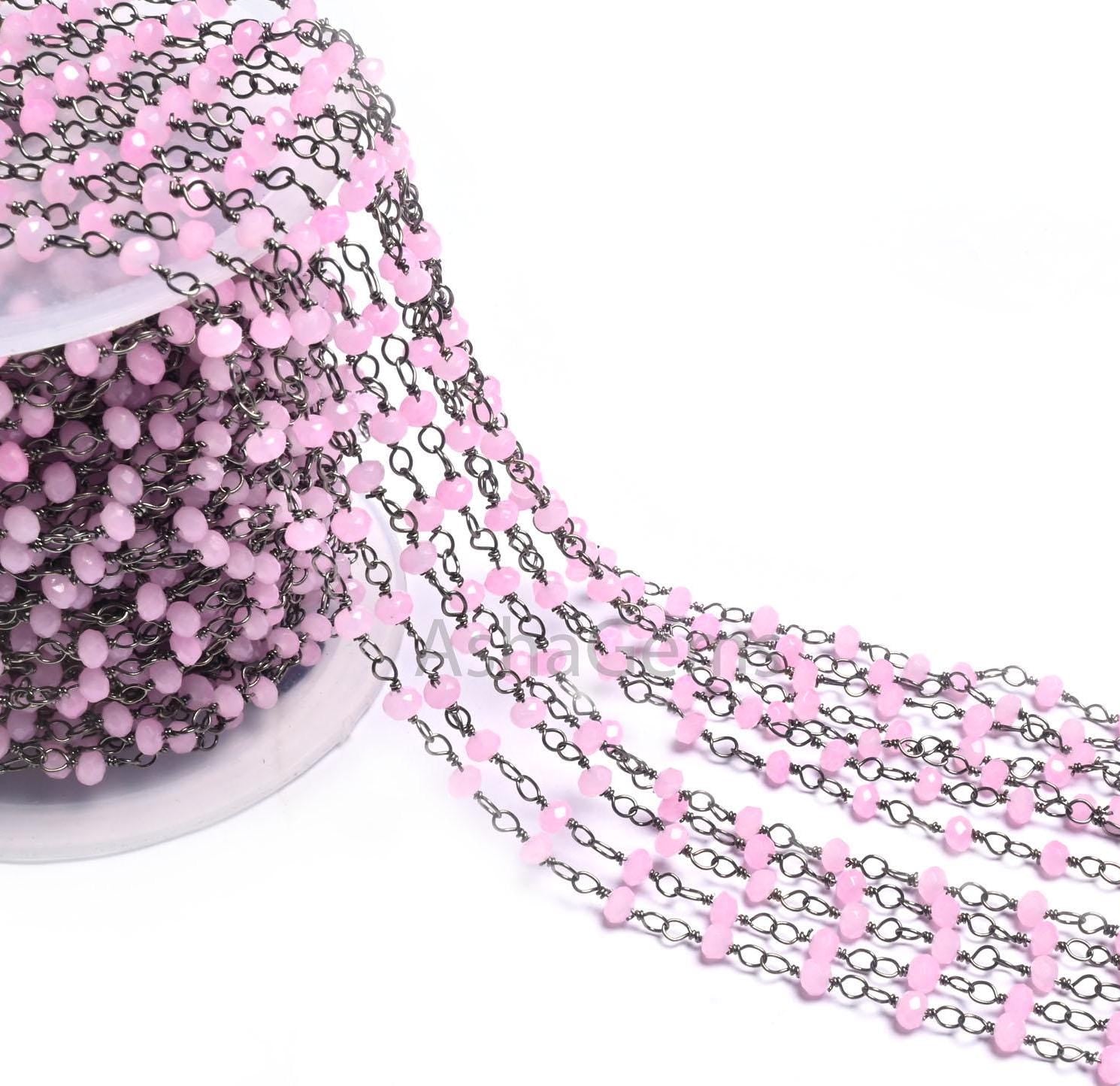 Rosary Chain black Plated Wire 3,5,10,50 Feet Pink Rose Quartz Hydro Faceted Rondelle Beaded Chain Jewelry Making Bulk Roll Wire Chain SALE