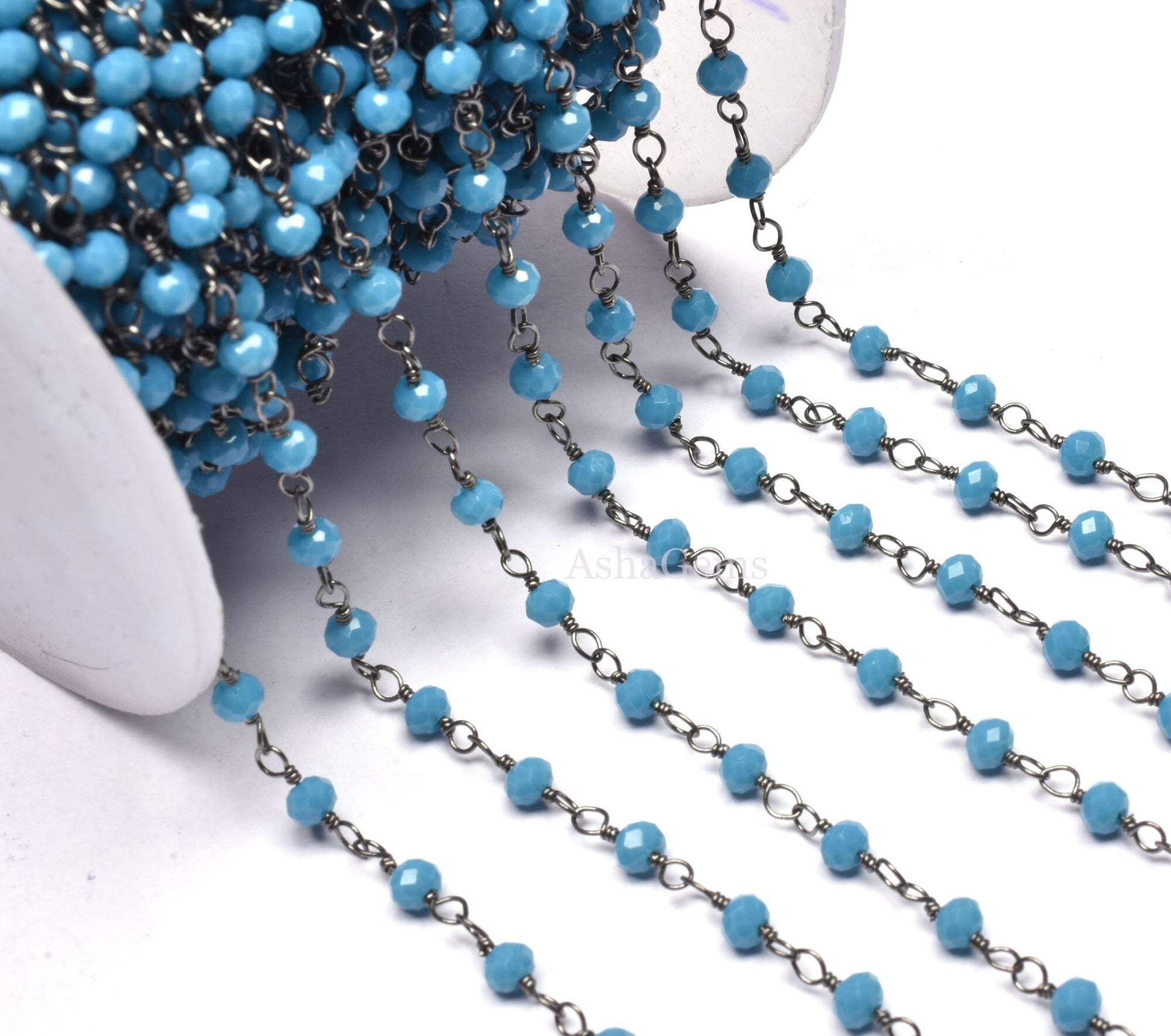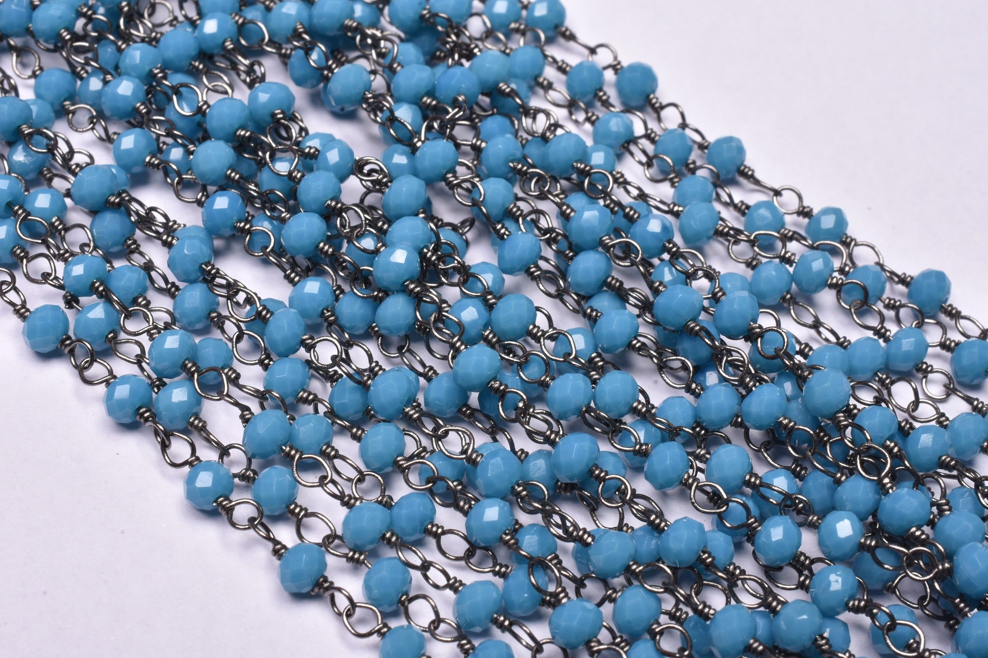 Rosary Chain Blue Turquoise Hydro Beads handmade Chain,3mm Gunmetal Wire Wrap Beaded Faceted Rondelle Chain Rosary Jewelry Making Craft SALE
