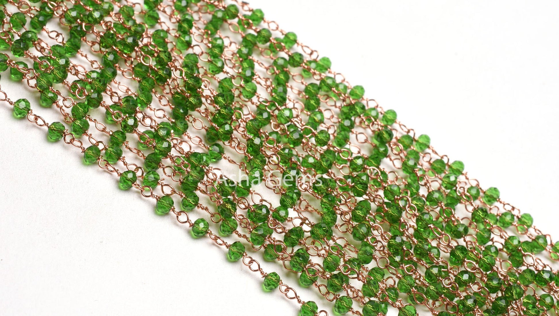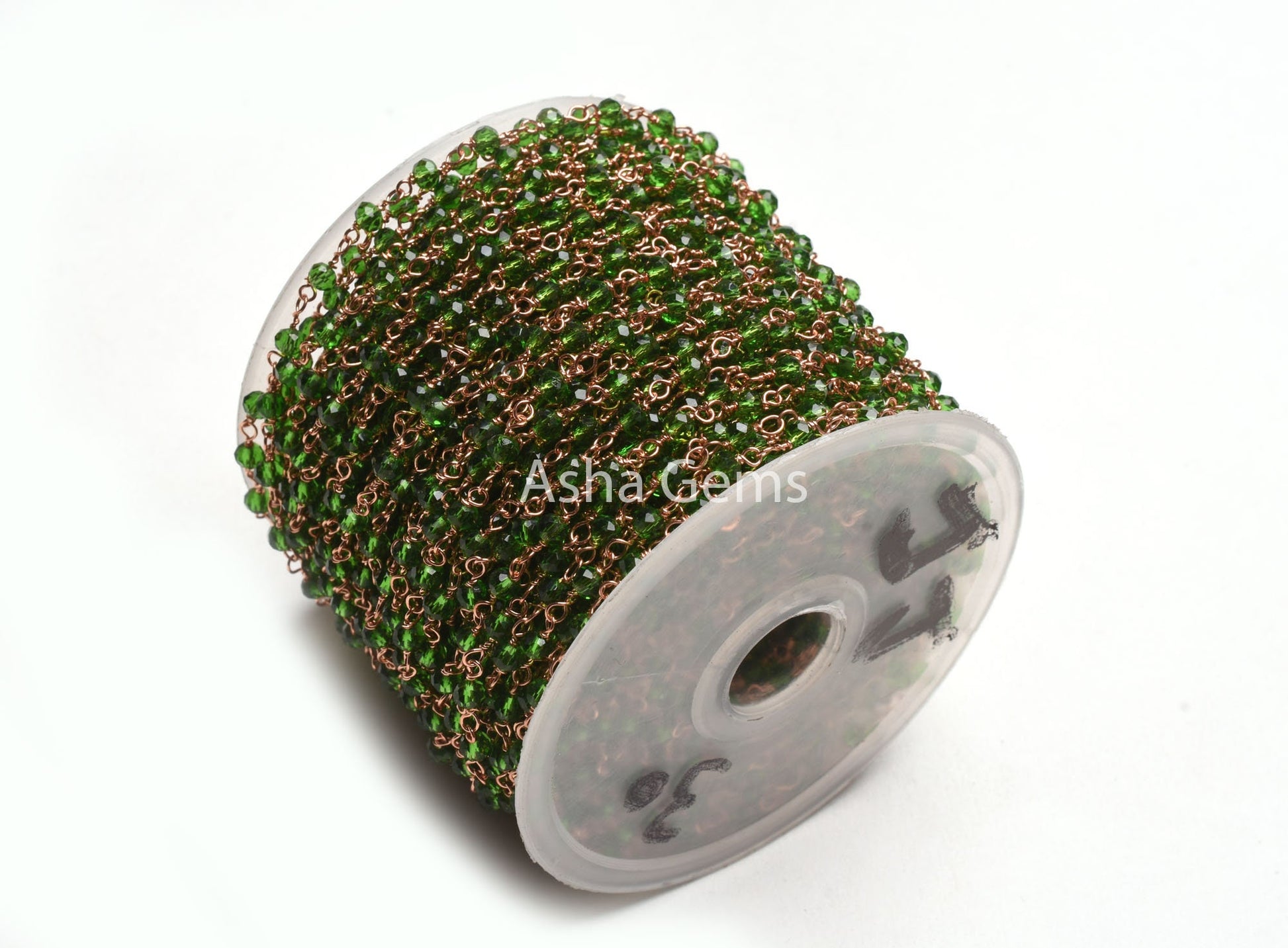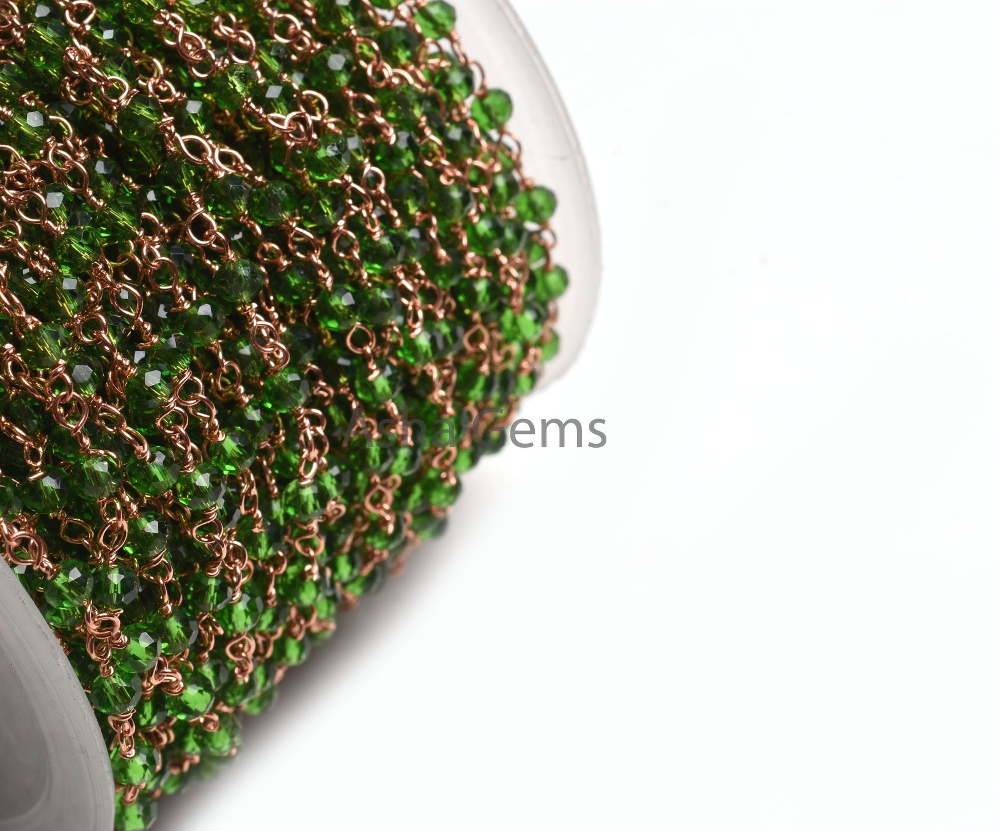 Rosary Chain, Green Chrome Diopside Hydro Faceted Beads Chain Rose Gold Plated Copper wire wrap rondelle Micro cut Beads Handmade Chain SALE