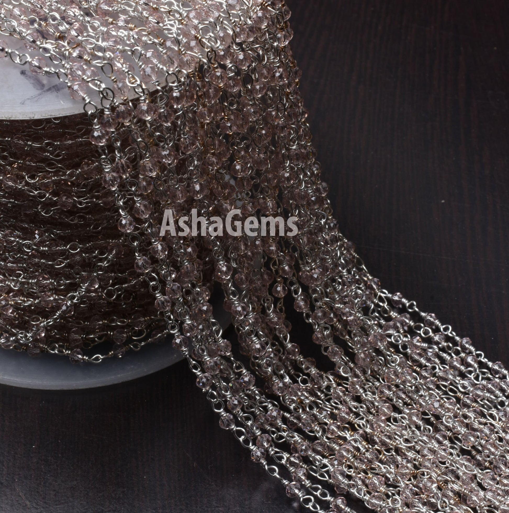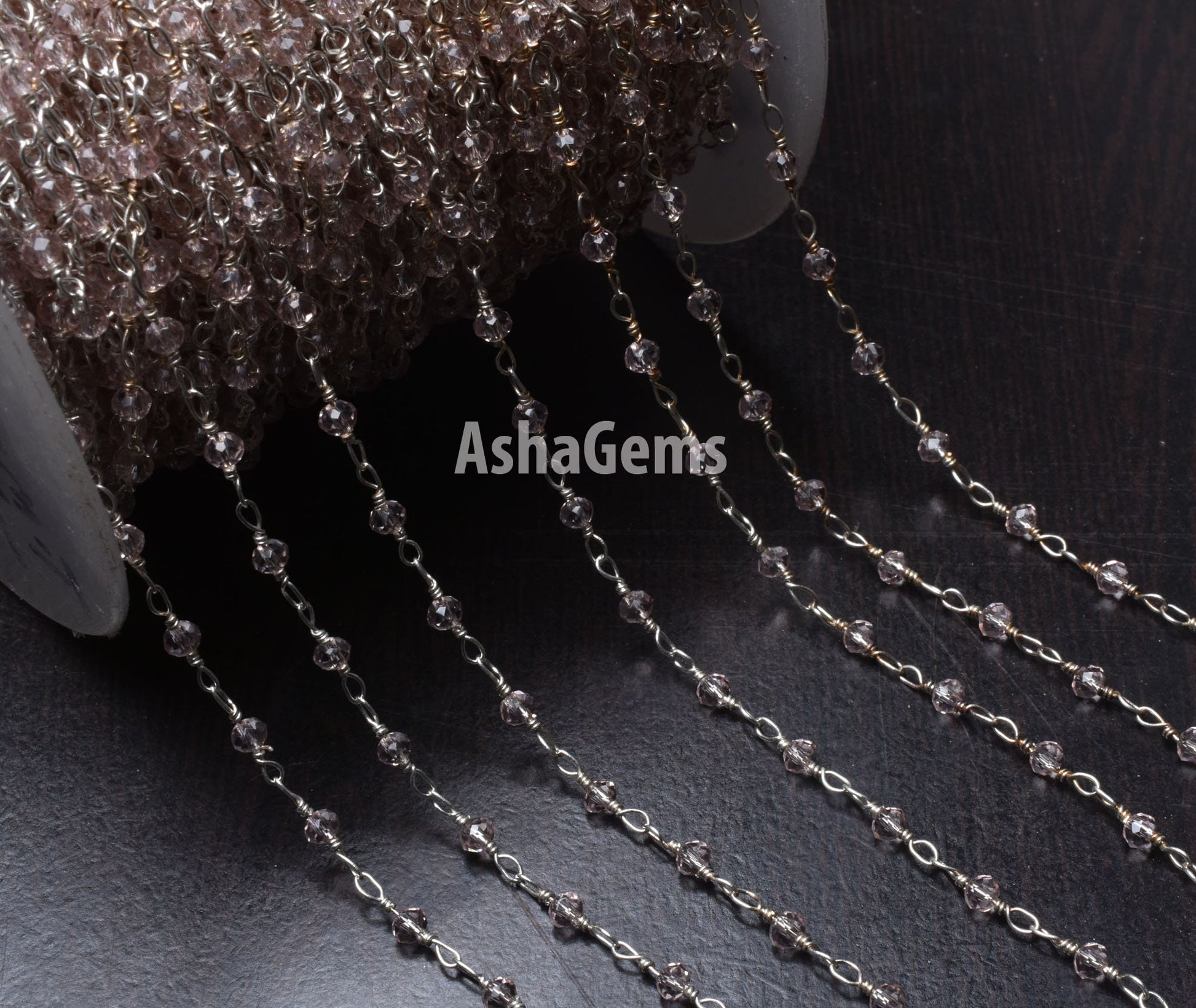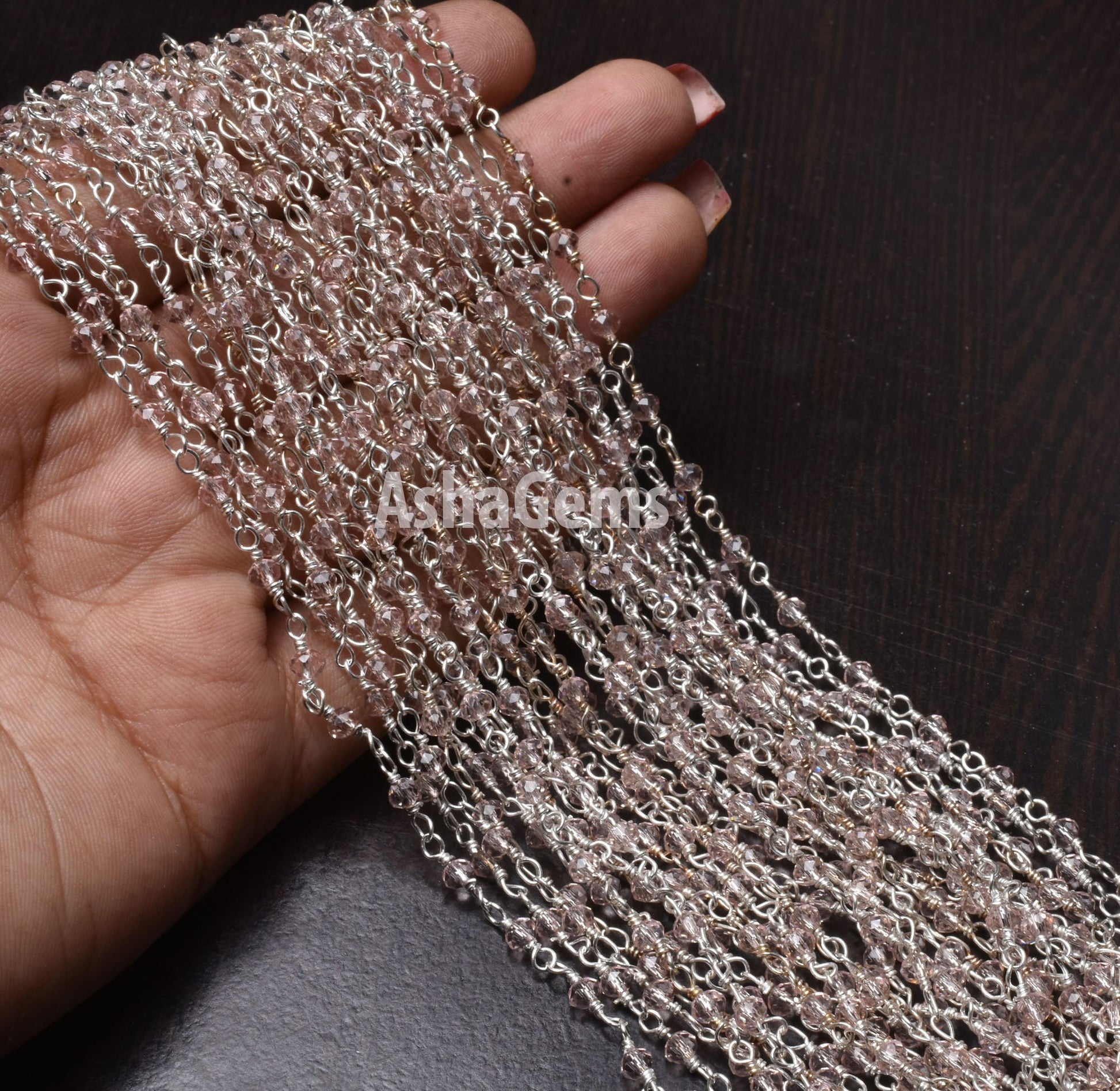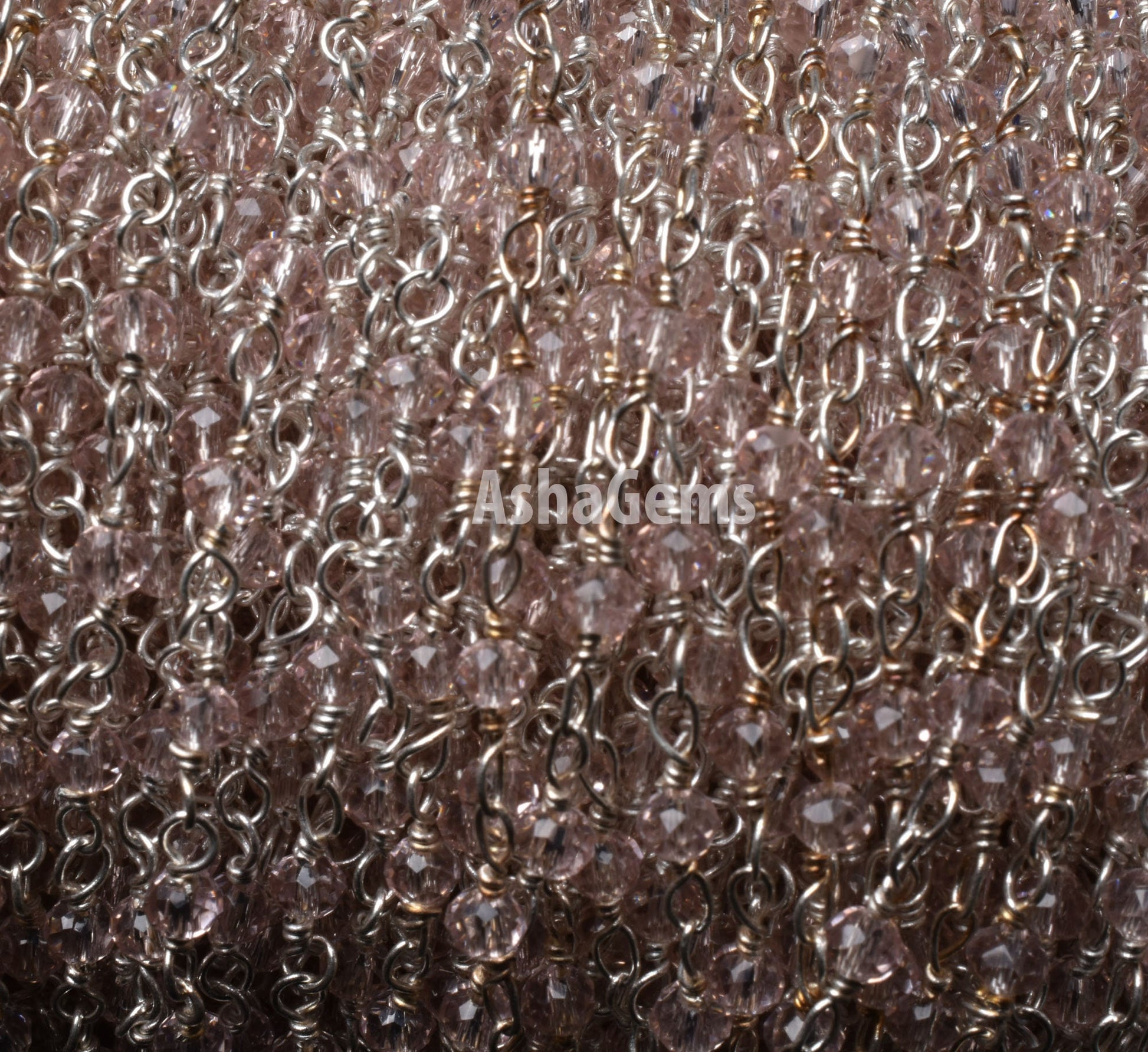 Rosary Chain Silver Plated Wire 3,5,10,25 Ft Light Pink Quartz Hydro Faceted Rondelle Beaded Jewelry Finding Wire Wrapped Chain 3-3.5mm SALE