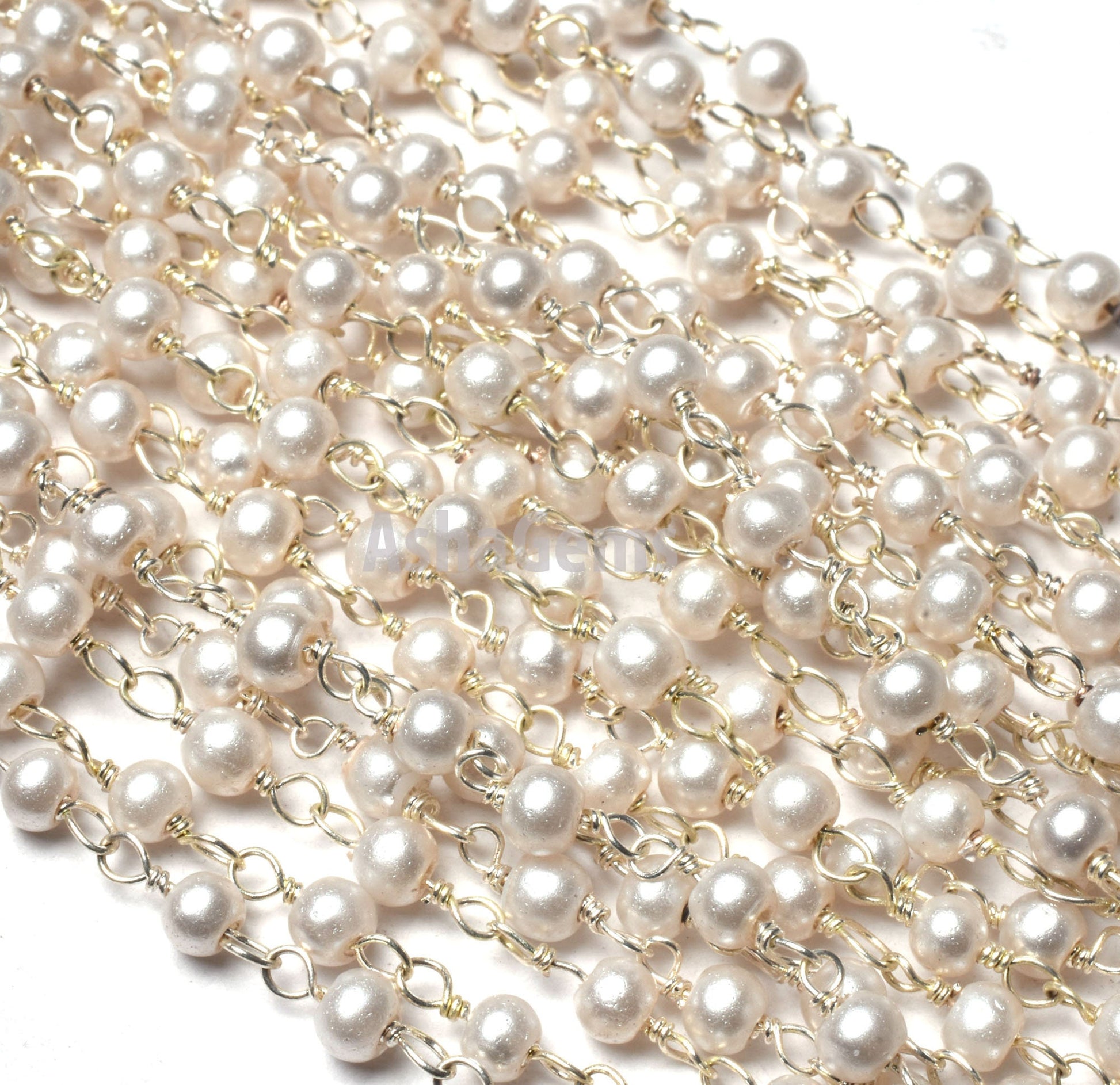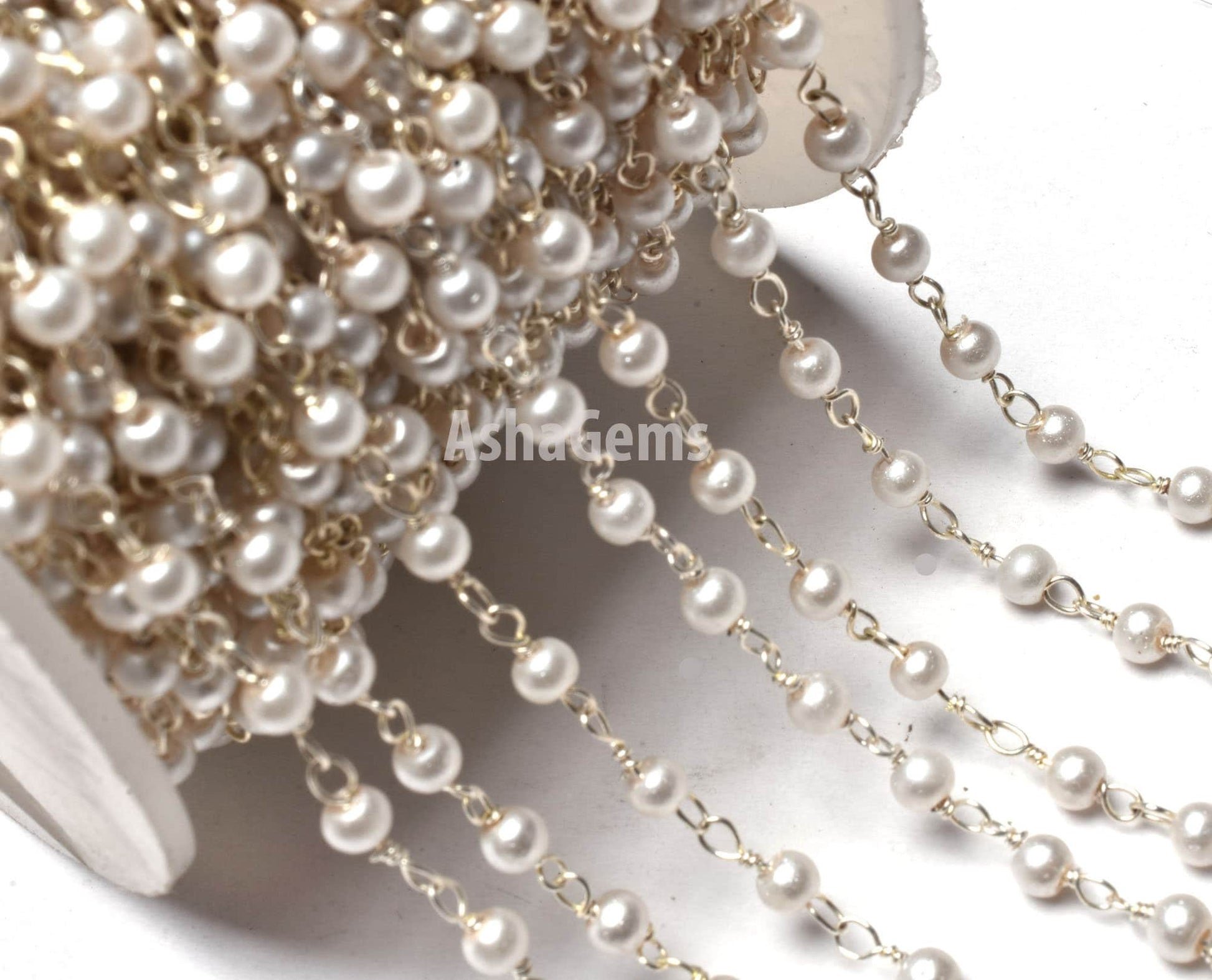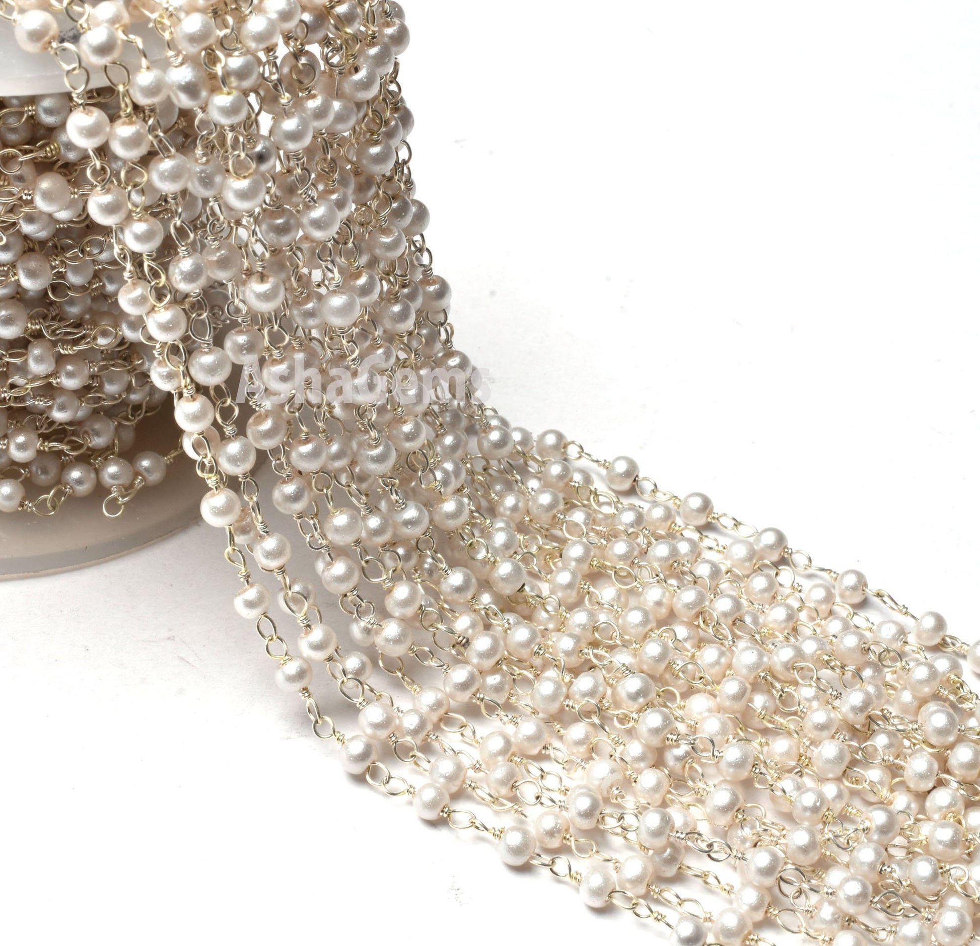 SALE 3,5,10,25 Ft White Pearl Hydro Faceted Rondelle Beaded Rosary Chain Silver Plated Wire,Jewelry Making Finding,Wire Wrapped Chain 3-3.5