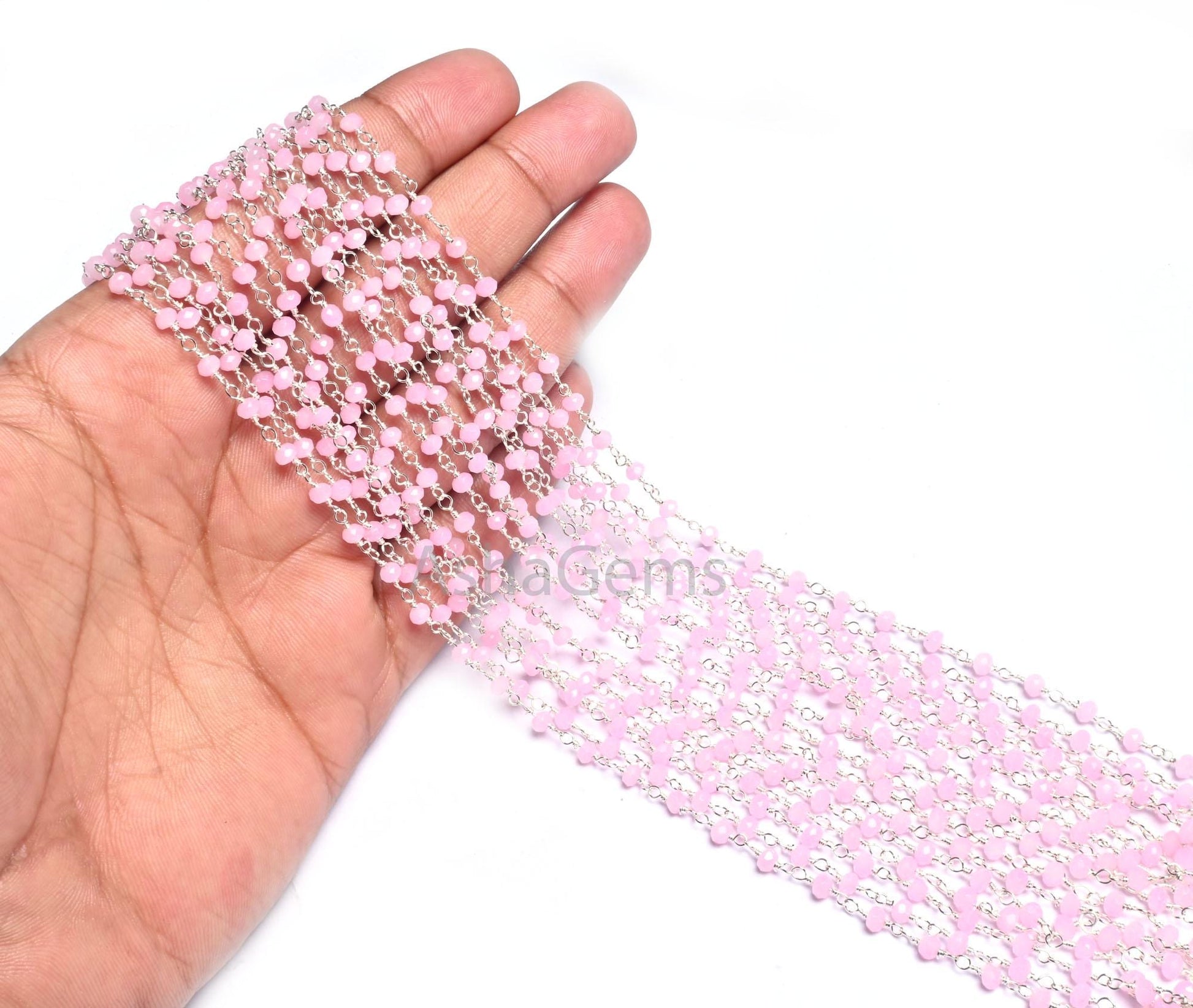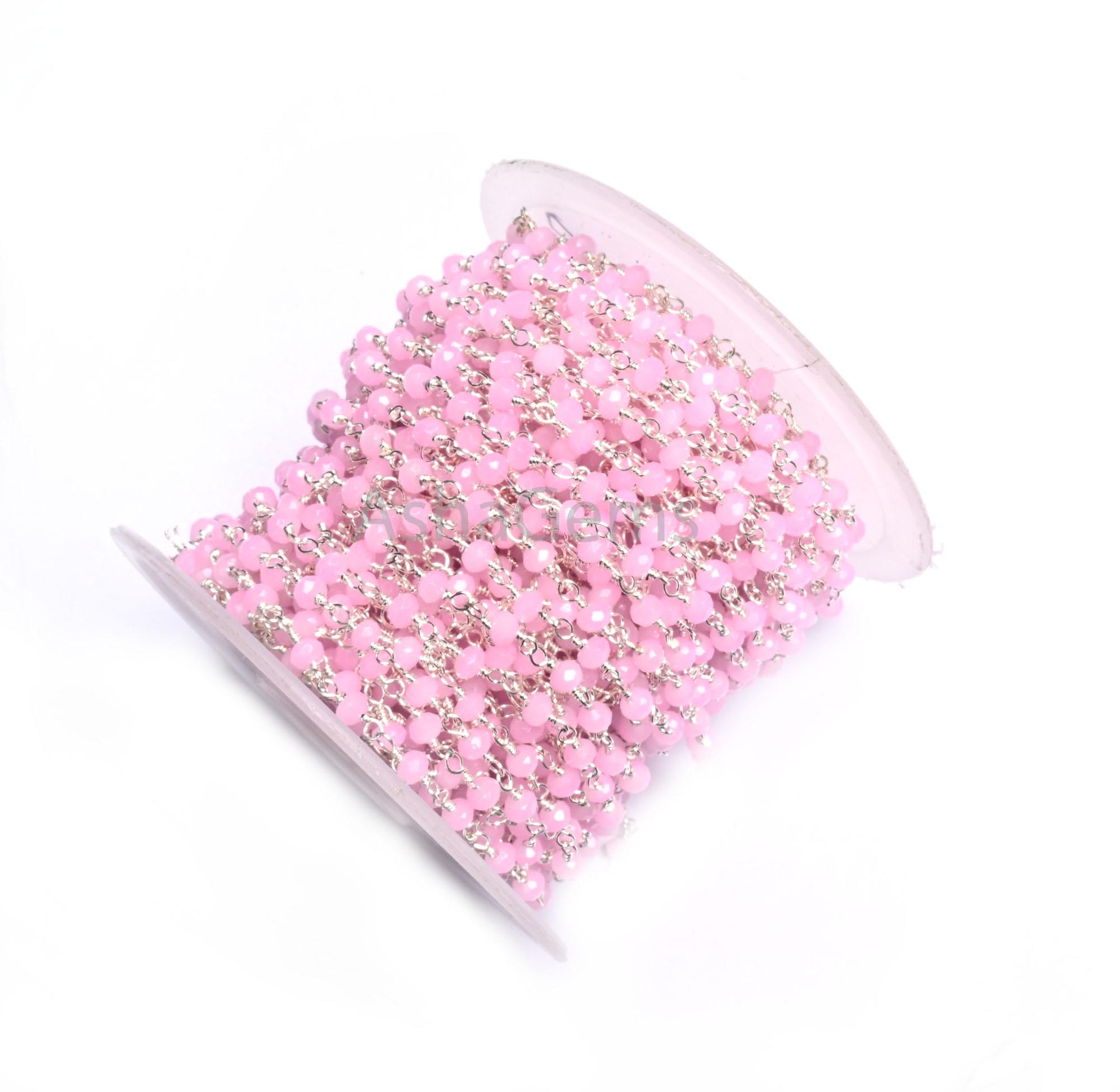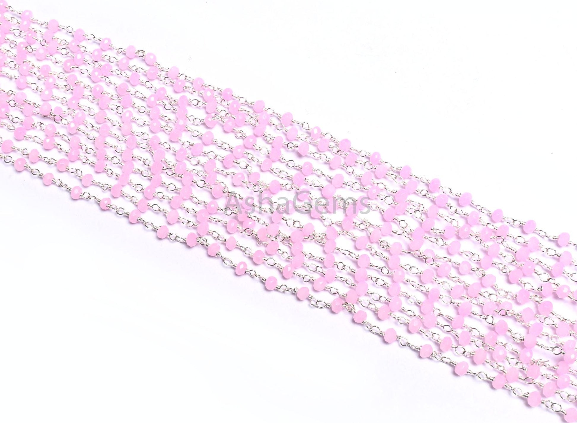 SALE Rosary Chain Silver Plated Wire Wrap 3,5,10,25 Feet Pink Rose Quartz Hydro Faceted Rondelle Beaded Chain Jewelry Making Finding,3-3.5mm