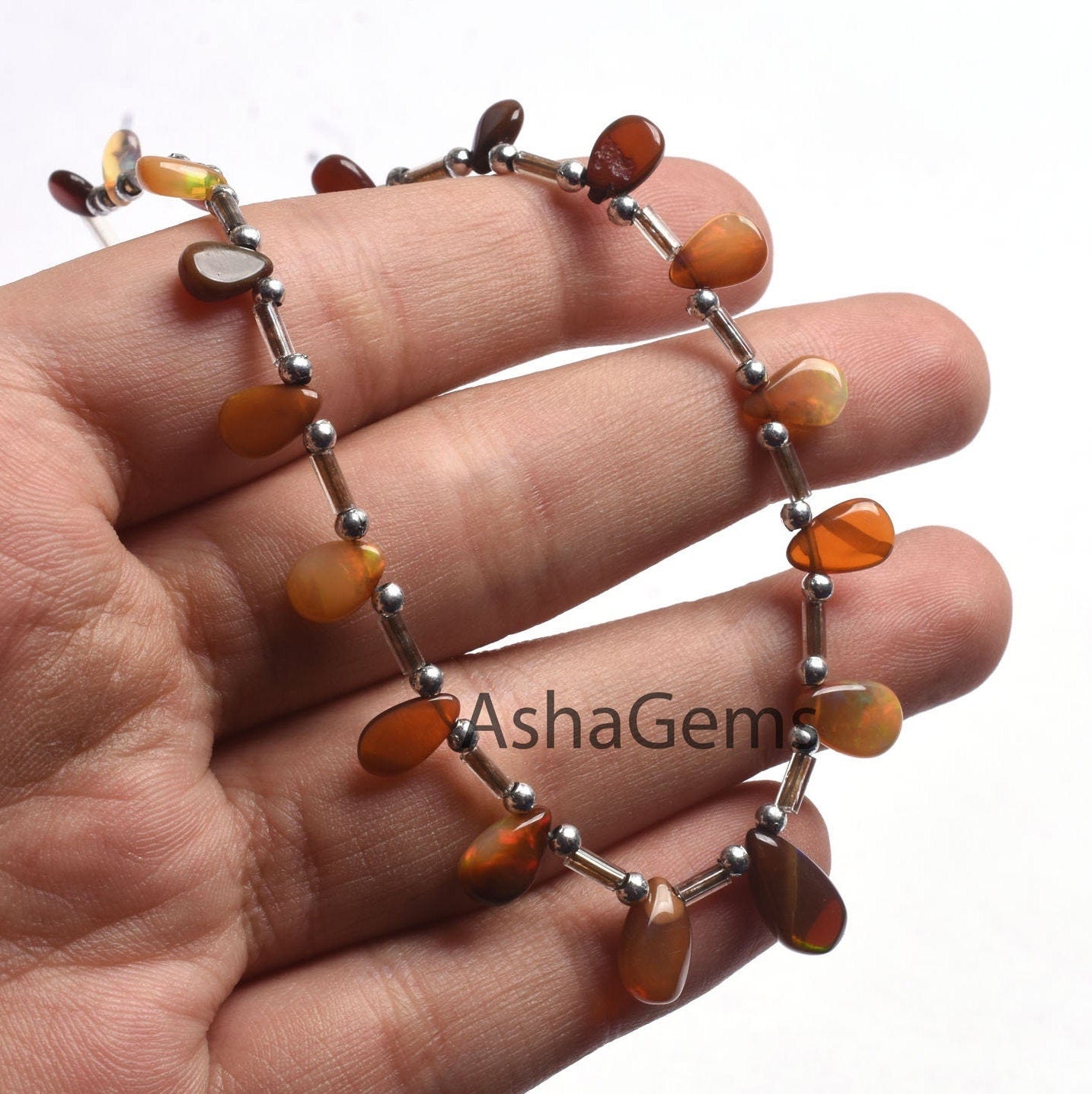 Shaded Brown-Yellow Ethiopian Opal Smooth Pear Beads,9"Strand Natural Welo Fire Ethiopian Opal Plain Teardrop Gemstone Bead Necklace Jewelry