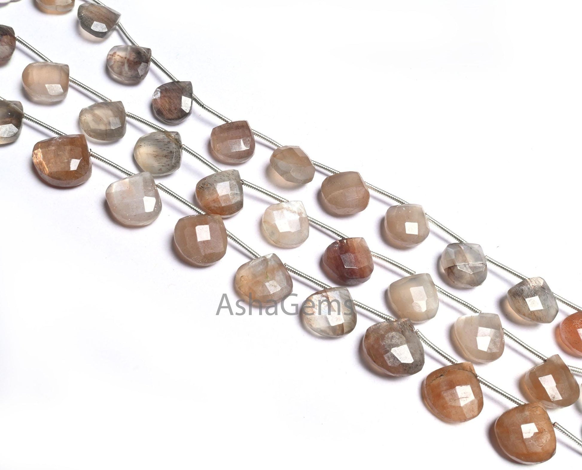 Shaded Grey Brown Moonstone Faceted Heart Gemstone Loose Beads,8" Bio Moonstone Heart Briolette Bead, Natural Moonstone Bead Jewelry makings (AG 18609)