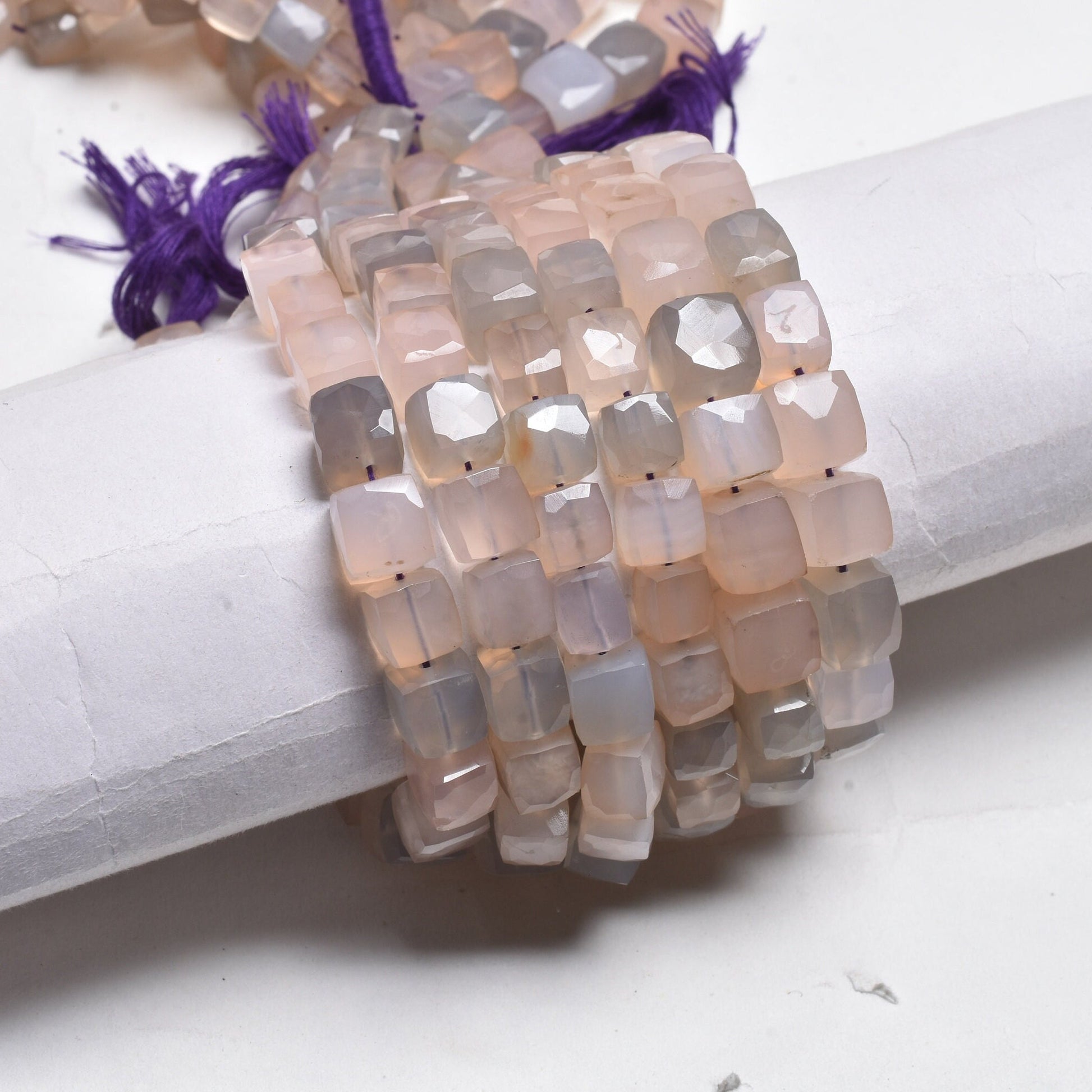Shaded Peach Grey Chalcedony Faceted 3D Cube Box Beads,8" Fine Chalcedony Cube Gemstone Beads, Chalcedony Indian Cut Bead Jewelry Craft SALE