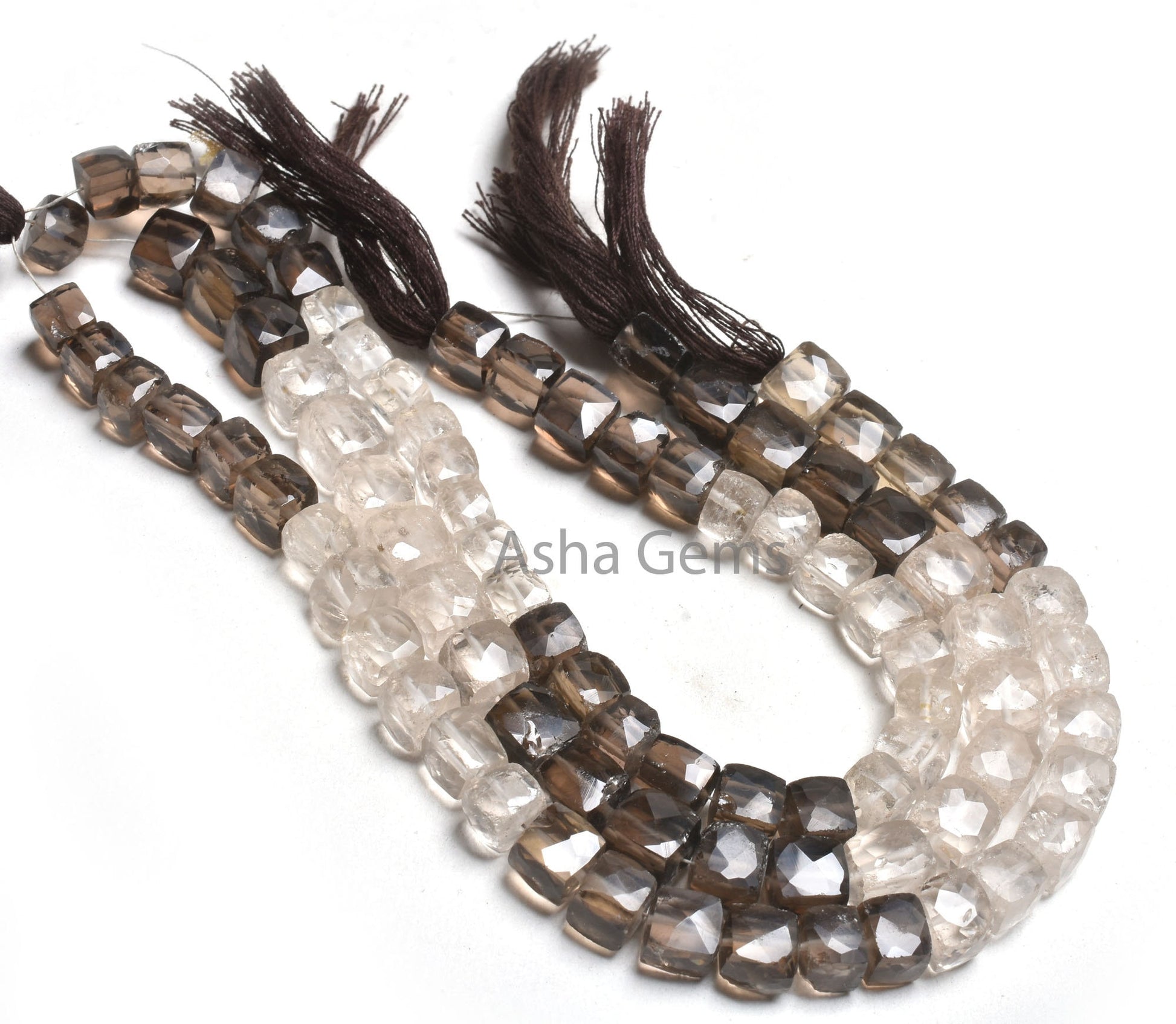 Shaded Smoky Quartz Faceted 3D Cube Box Gemstone Beads,8" Strand Natural Smoky Box Cube Beads, Fine Smoky Bead Jewelry Making Craft SALE