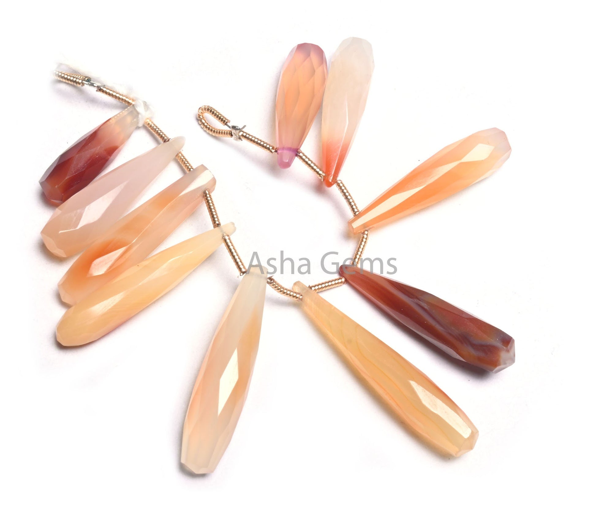 Shaded White Orange Red Chalcedony Fancy Pencil Drops Faceted Beads, 6x21-7x31mm Chalcedony Long Teardrop Briolette Gemstone Beads Jewelry