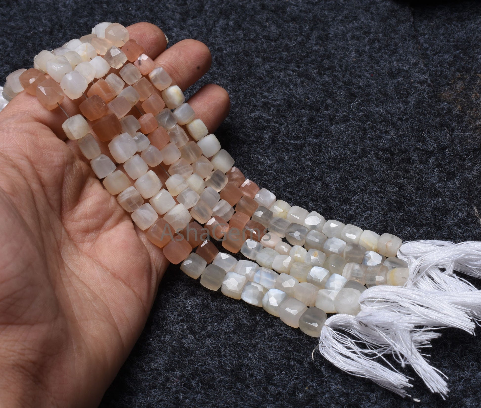 Shaded White-Pink Moonstone Faceted Box Gemstone Beads,8"strand natural Multi Moonstone Cube Beads Moonstone Beads Jewelry making Craft SALE