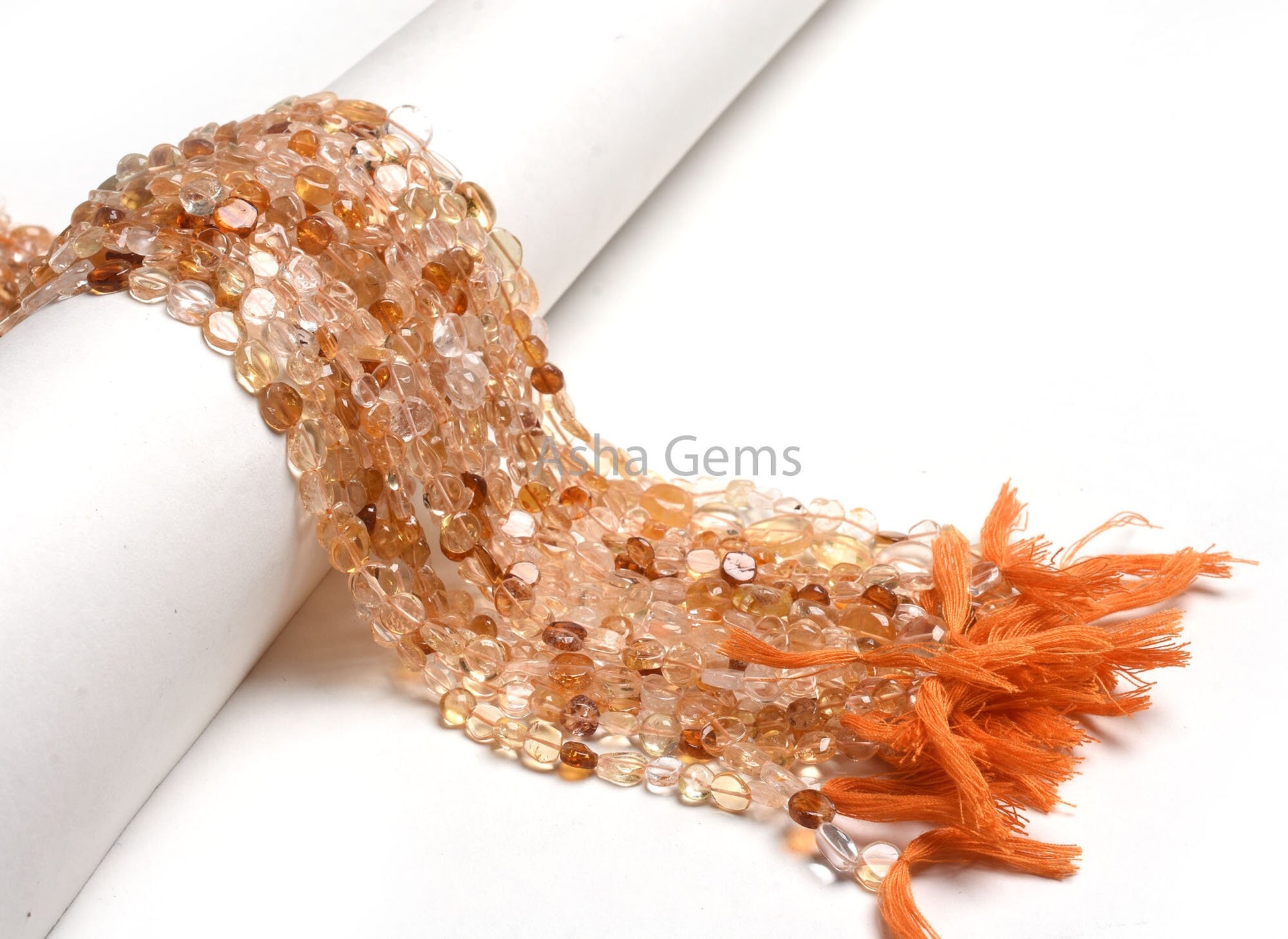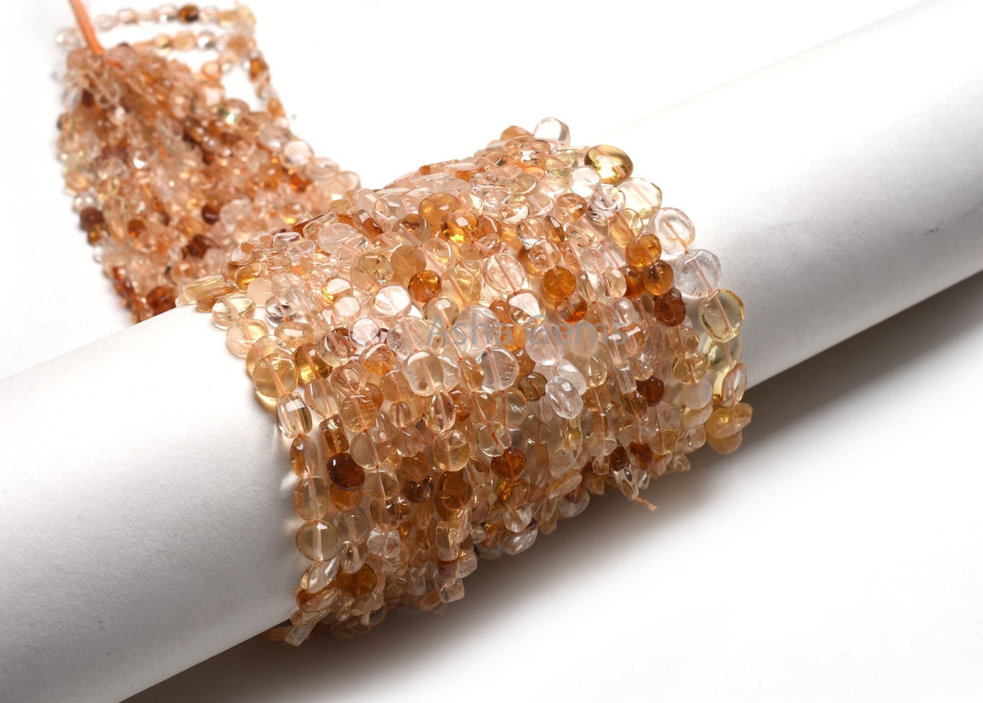 Shaded Yellow Citrine Smooth Uneven Coin Shape Beads, Natural Citrine Plain Handmade Coin Straight Drill Gemstone Beads Citrine Bead Jewelry
